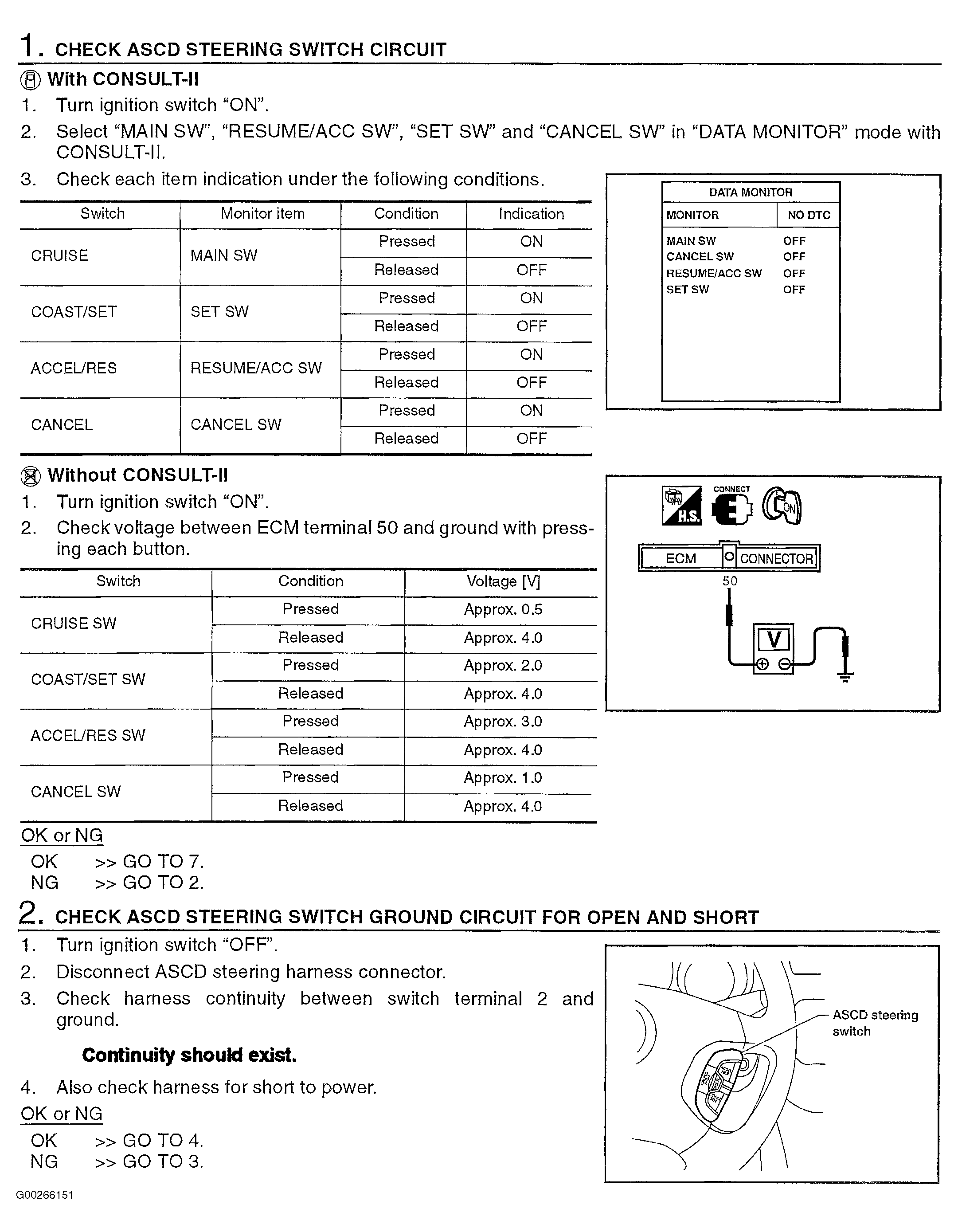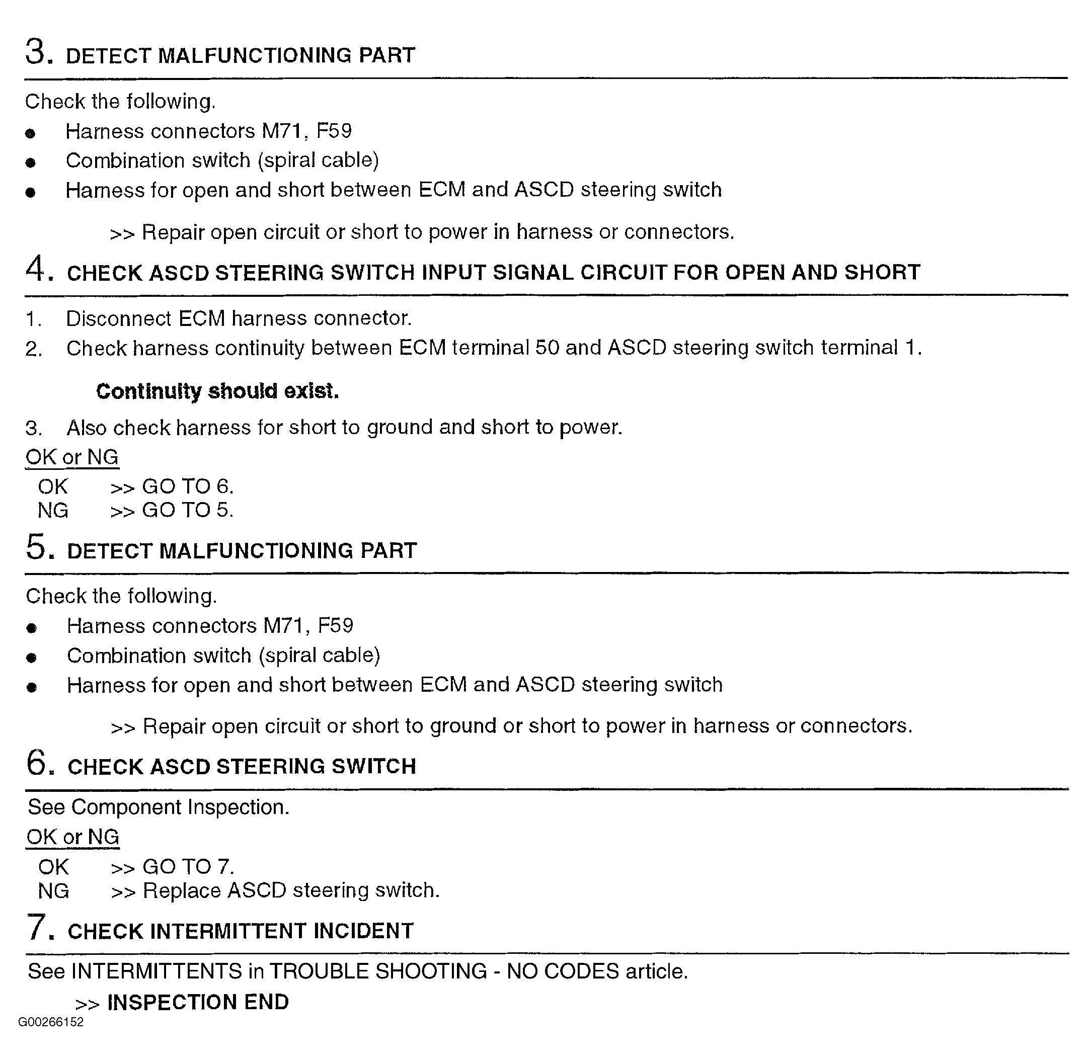 For component inspection, see COMPONENT INSPECTION and for intermittents, see INTERMITTENTS in TROUBLE SHOOTING - NO CODES
