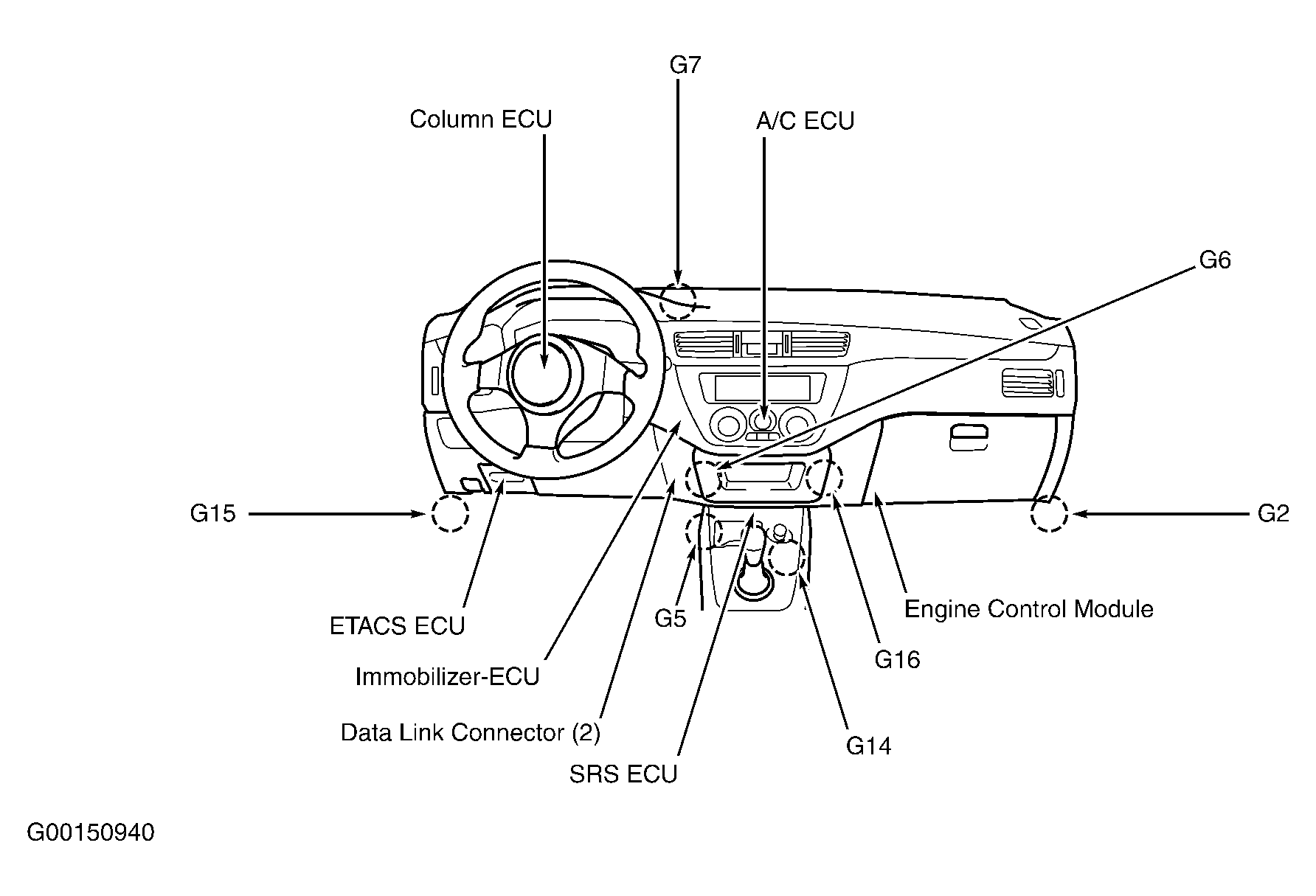 Immobilizer-ECU (Evolution) Behind left side of dash, near data link connectors. See Figure .