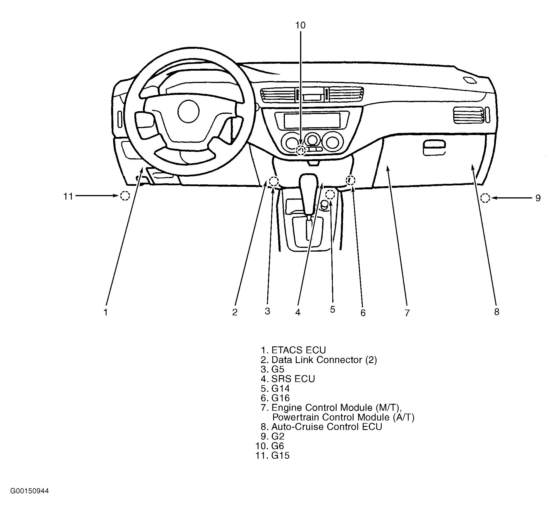 Auto Cruise Control ECU (Except Evolution) Behind right end of dash. See Figure .