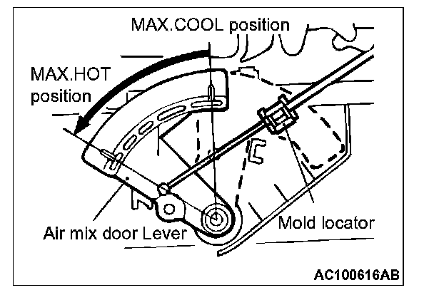 2. Set the heater unit's air mix door lever to the MAX HOT position (turn the damper lever as the left illustration) and attach the cable.