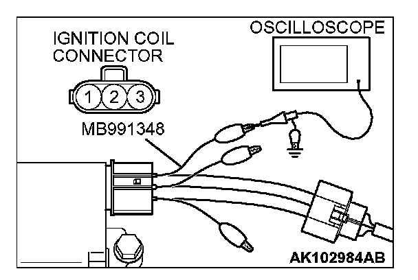 2. Connect the oscilloscope probe to ignition coil connector terminal 3.