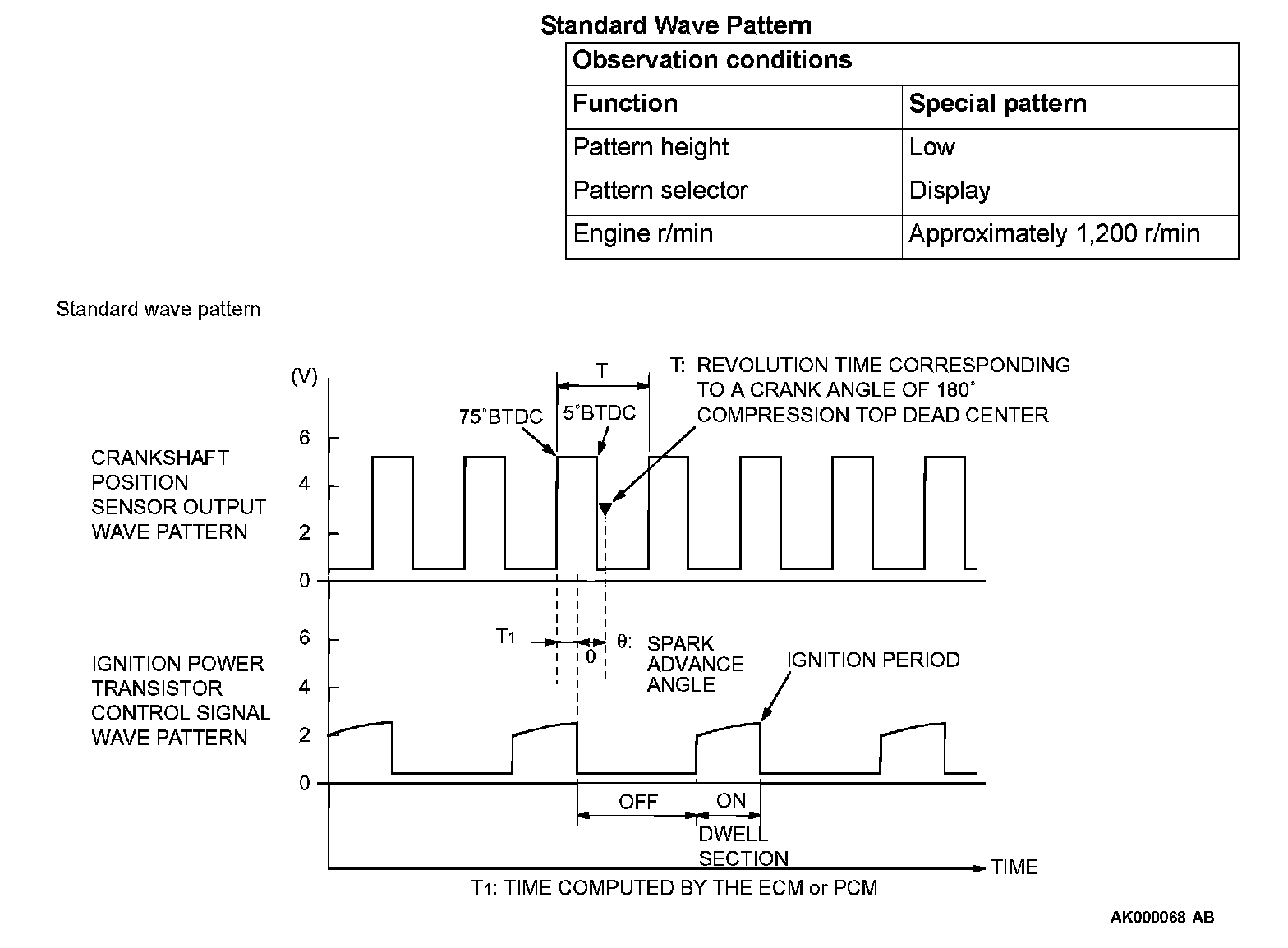 Point: Condition of wave pattern build-up section and maximum voltage (Refer to abnormal wave pattern examples 1 and 2.