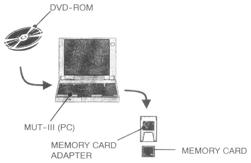 Before beginning reprogramming, you must first transfer new reprogramming data from a DVD to a PC memory card adapter equipped with a compact flash memory chip. The data is transferred from the DVD-ROM to the PC hard drive, then to the PC memory card.