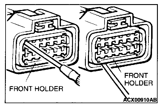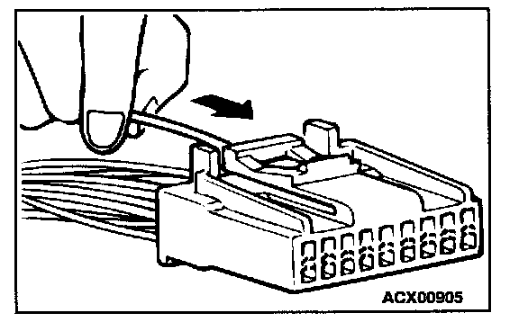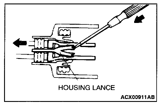 Loosely engaged terminals can be repaired by removing the female terminal from the connector housing and raising its lance to establish better engagement. Removal of the connector terminal used for MFI and INVECS-11 A/T control circuits can be done in the following manner.