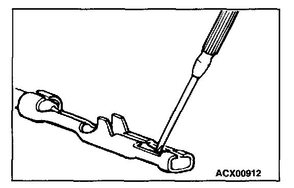 3. Press the contact point of the male terminal down by holding a screwdriver [1.4 mm (0.06 inch) width] as shown in the figure.