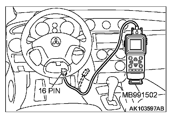 CAUTION: To prevent damage to scan tool MB991502, always turn the ignition switch to the "LOCK" (OFF) position before connecting or disconnecting scan tool MB991502.