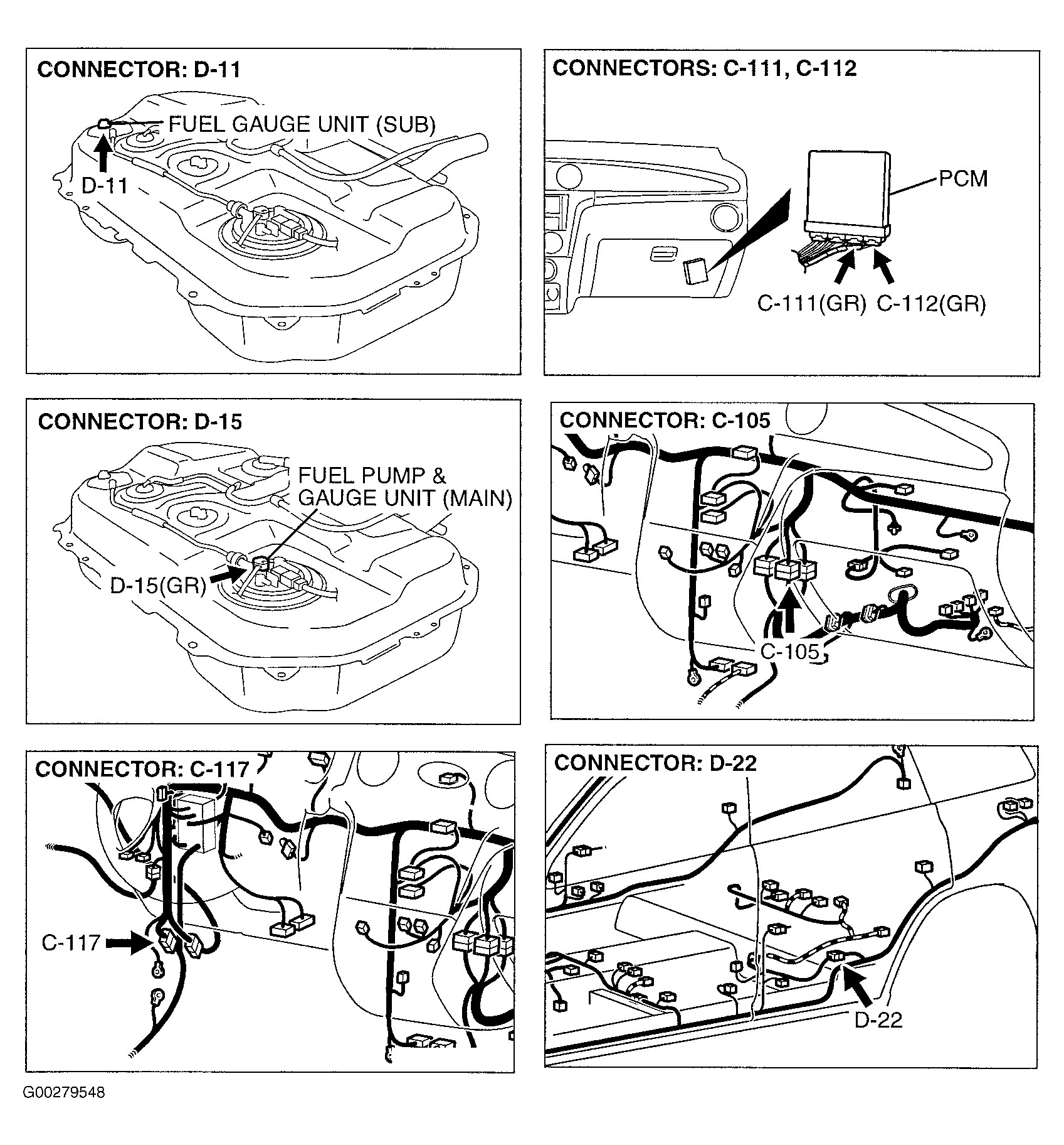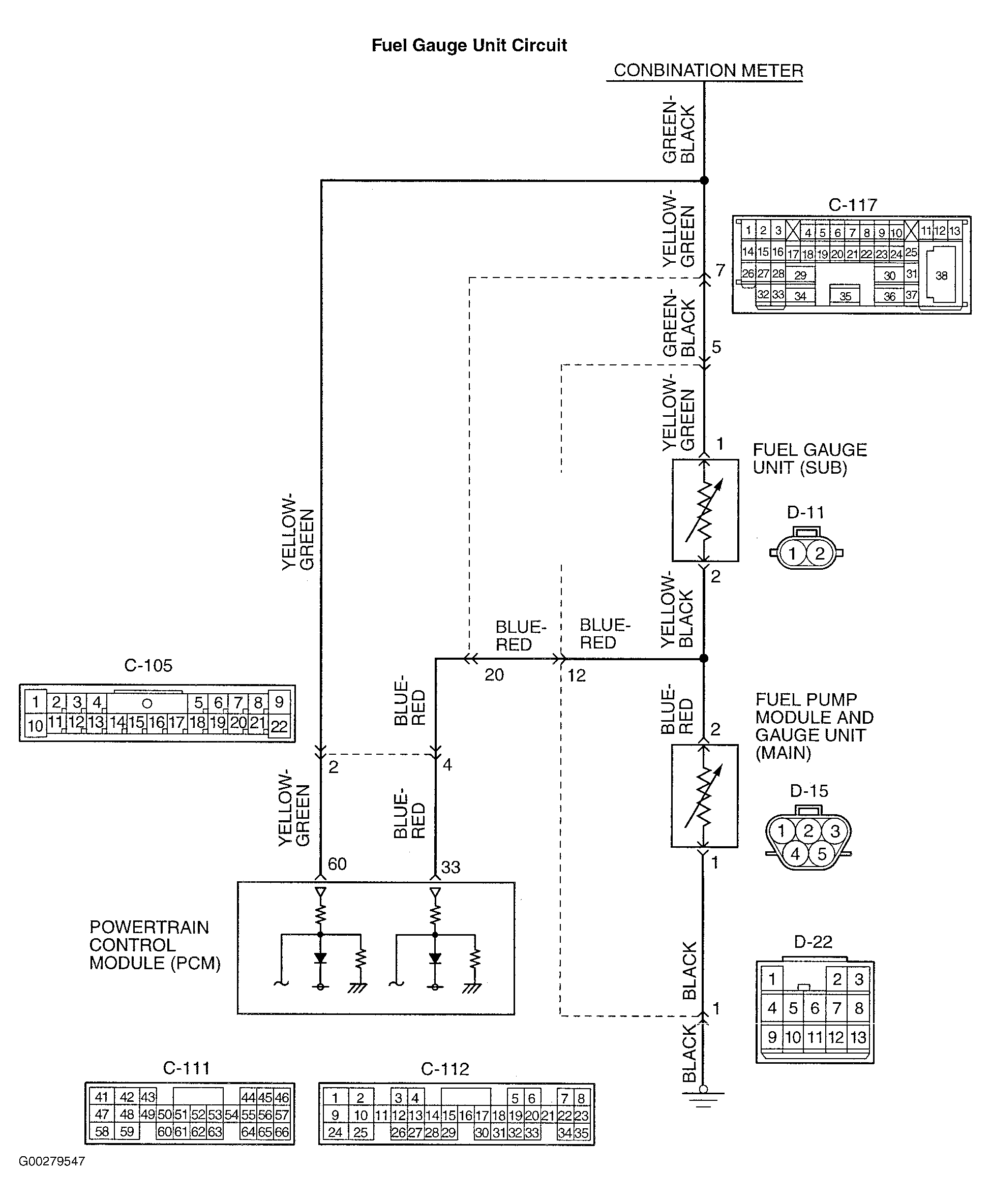 The fuel gauge (main) drive signal is input in PCM (terminal No. 33). See Fig 1