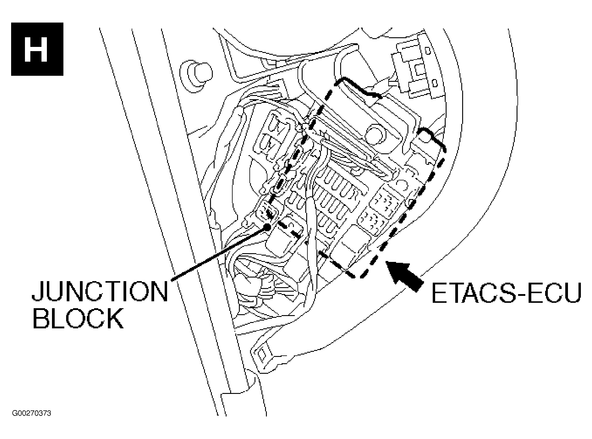 ETACS ECU Behind left side of dash, on junction block. See Figure .