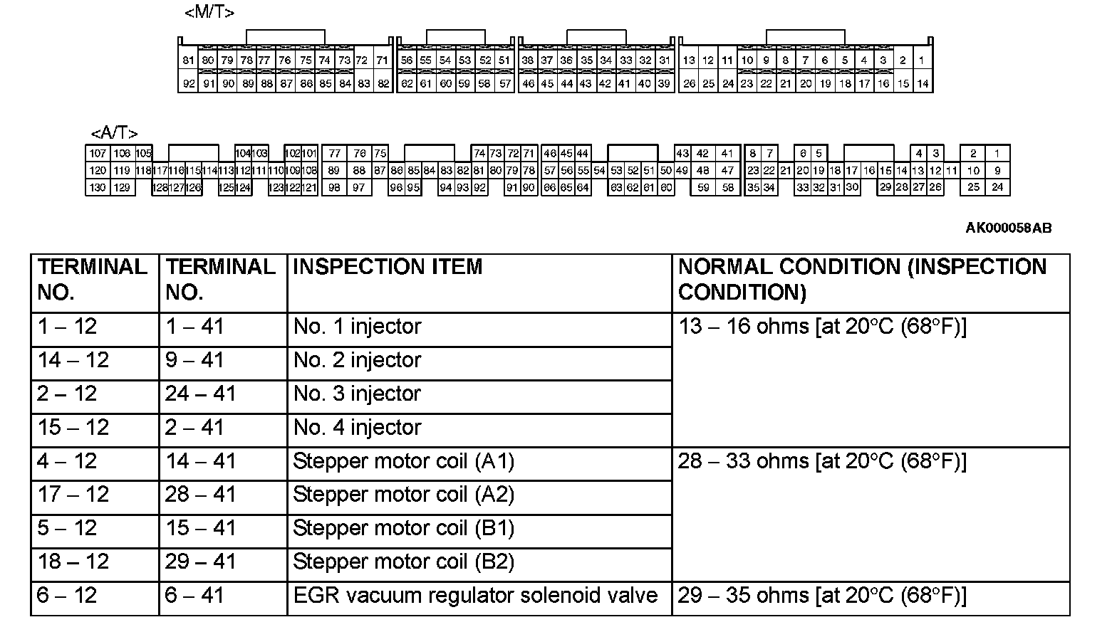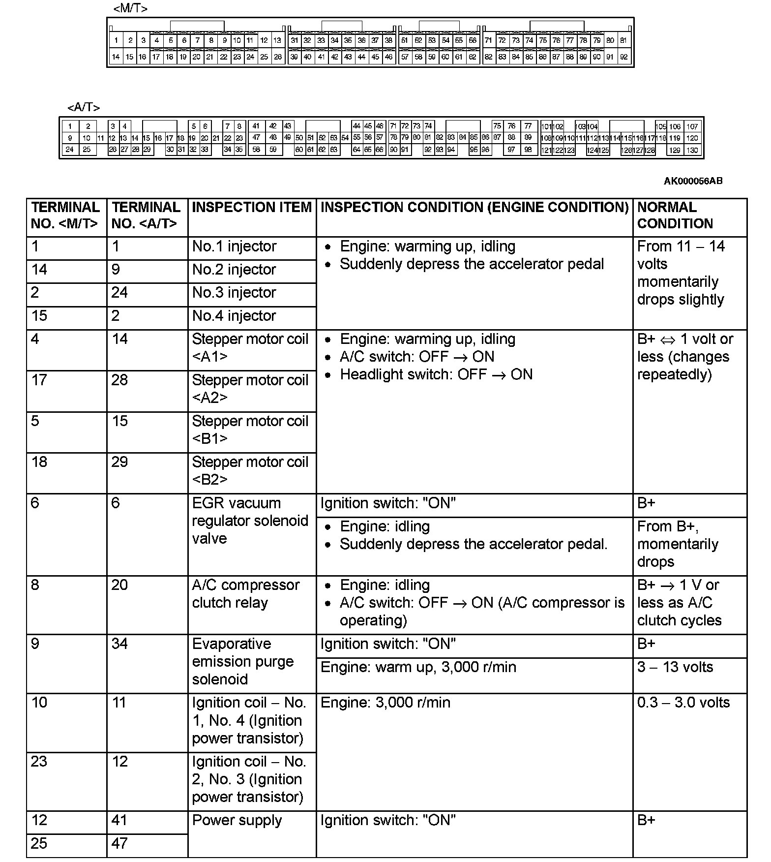 ECM <M/T> Or PCM <A/T> Connector Terminal Arrangement Part 4: