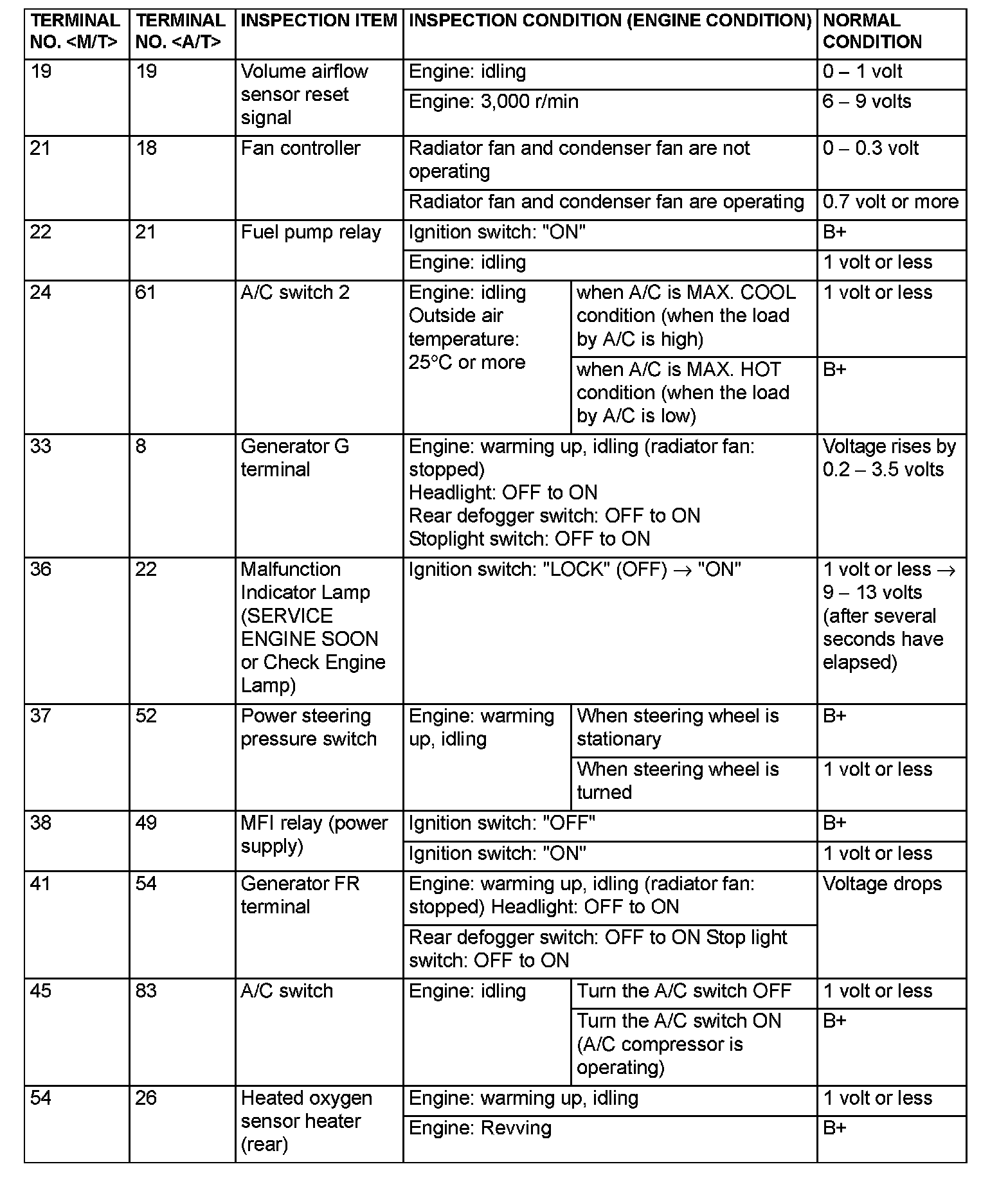 ECM <M/T> Or PCM <A/T> Connector Terminal Arrangement Part 5:
