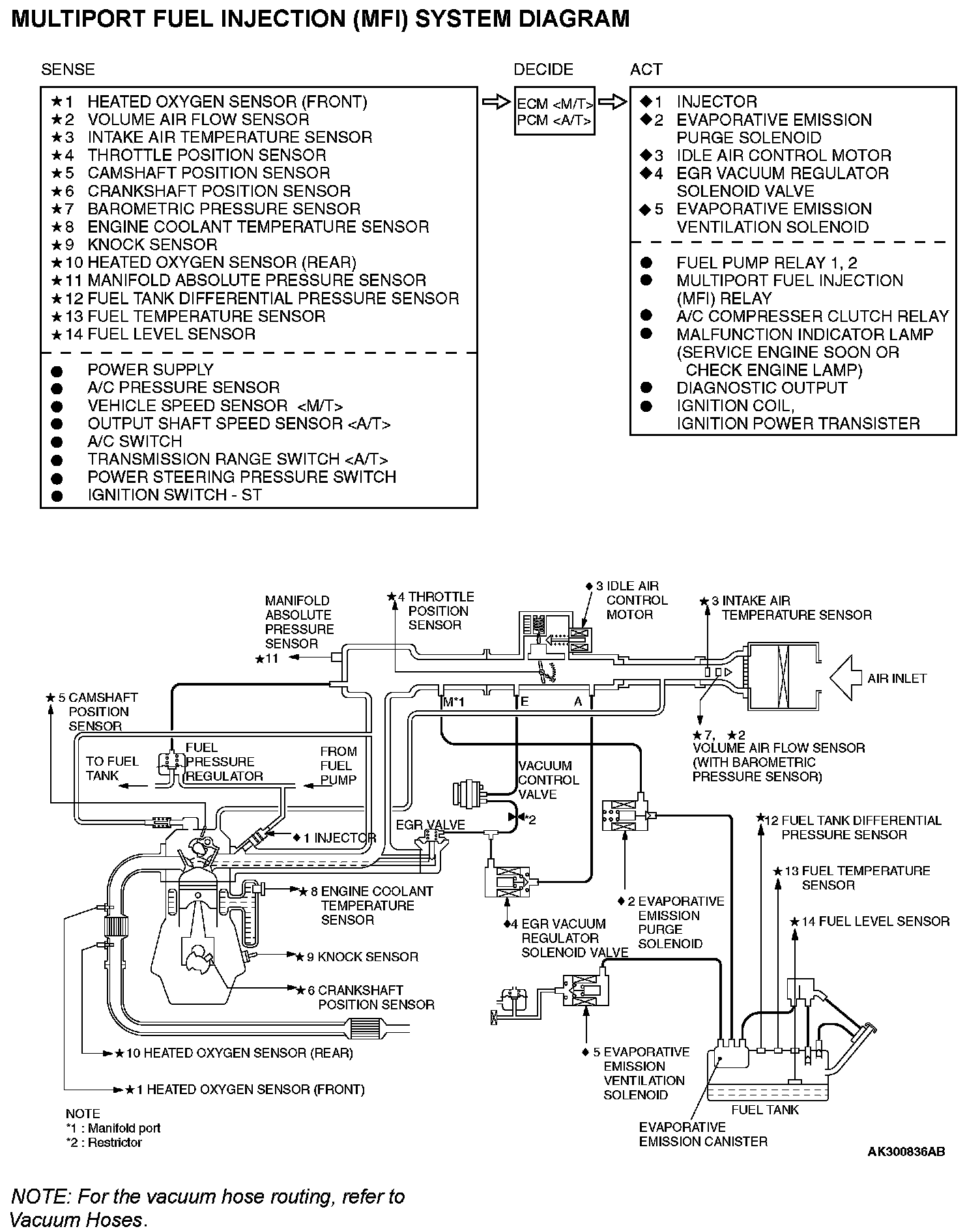The Multiport Fuel Injection System consists of sensors, actuators and the engine control module (ECM)