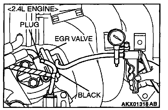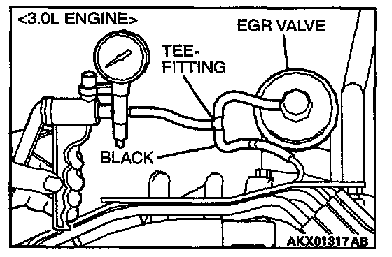 EGR SYSTEM CHECK1. Disconnect the vacuum hose (black) from the EGR valve, and then connect a hand vacuum pump via the Tee-fitting.