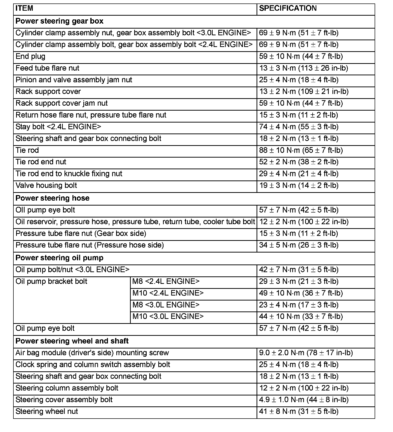 Power Steering Tightening Specifications