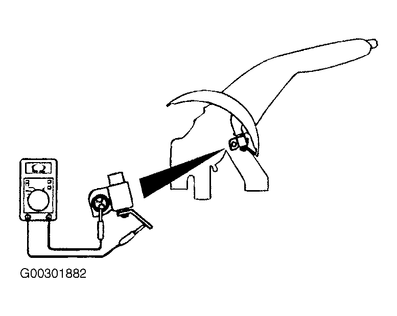 Remove floor console. Remove right front seat. Check continuity between parking brake switch terminal and switch mounting bolt. See Fig 1 . When parking brake lever is pulled, resistance should be less than 2 ohms. When parking brake lever is released, circuit should be open.