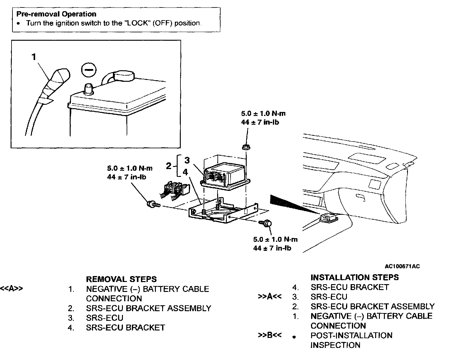 SRS CONTROL UNIT (SRS-ECU)REMOVAL AND INSTALLATION
