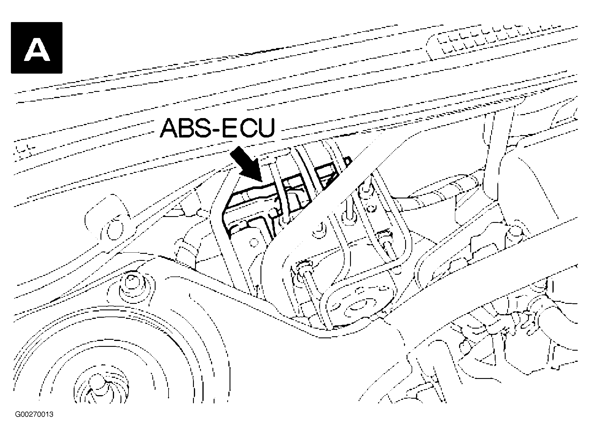| ABS ECU | On right rear of engine compartment. See Figure . |