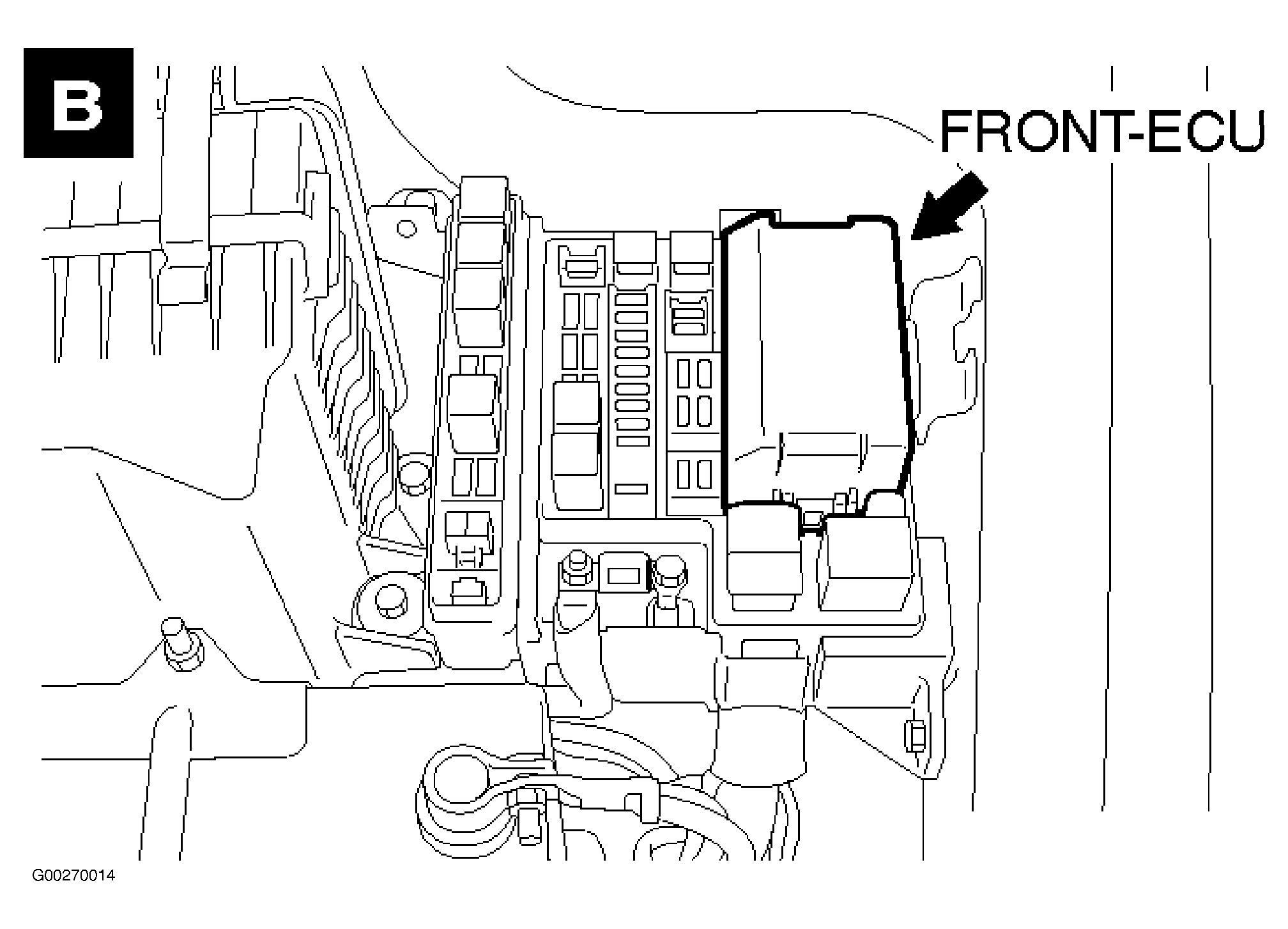 | Front-ECU | In engine compartment relay box. See Figure . |
