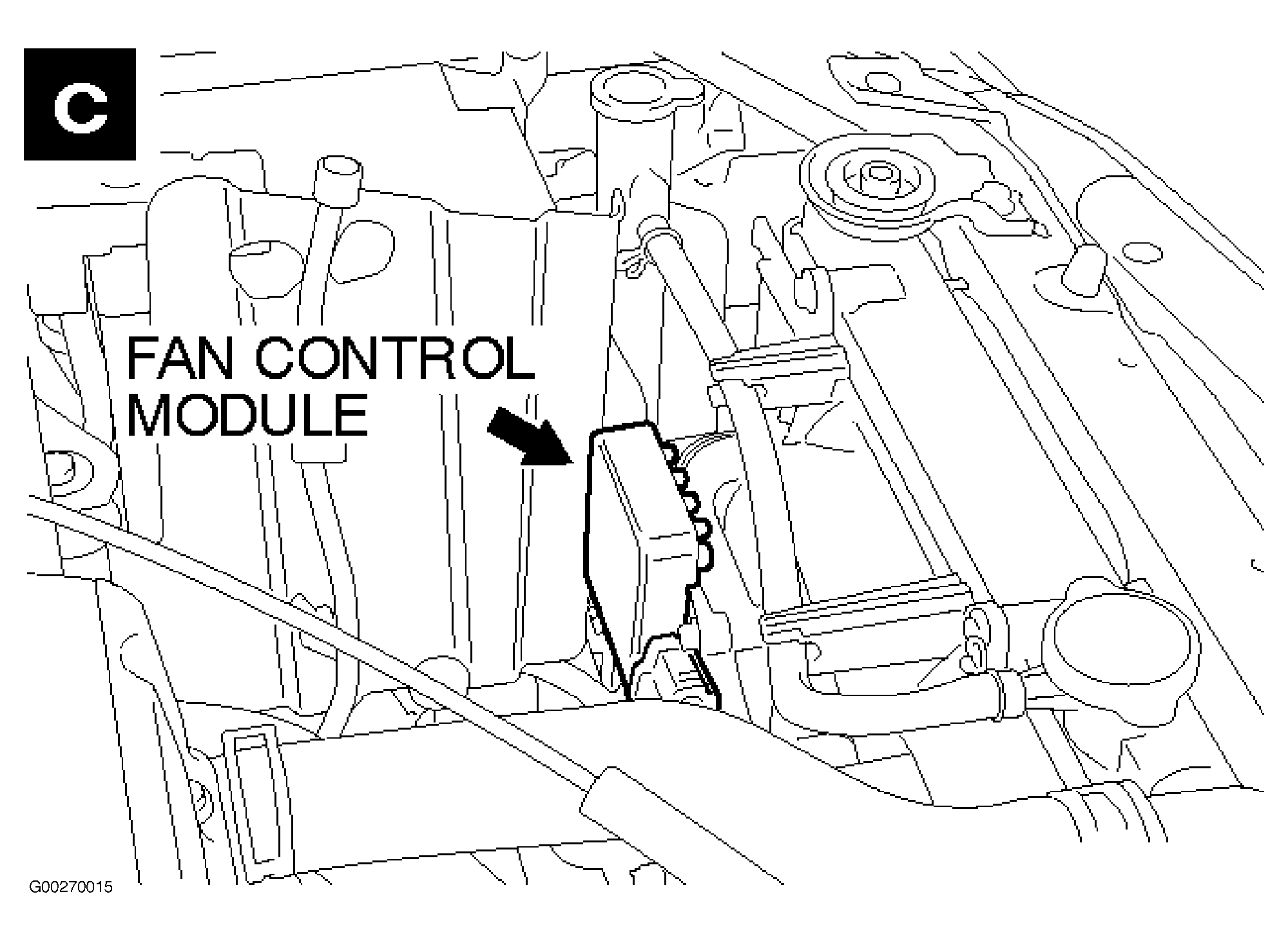 | Fan Control Module | On fan shroud, at left front of engine compartment. See Figure . |