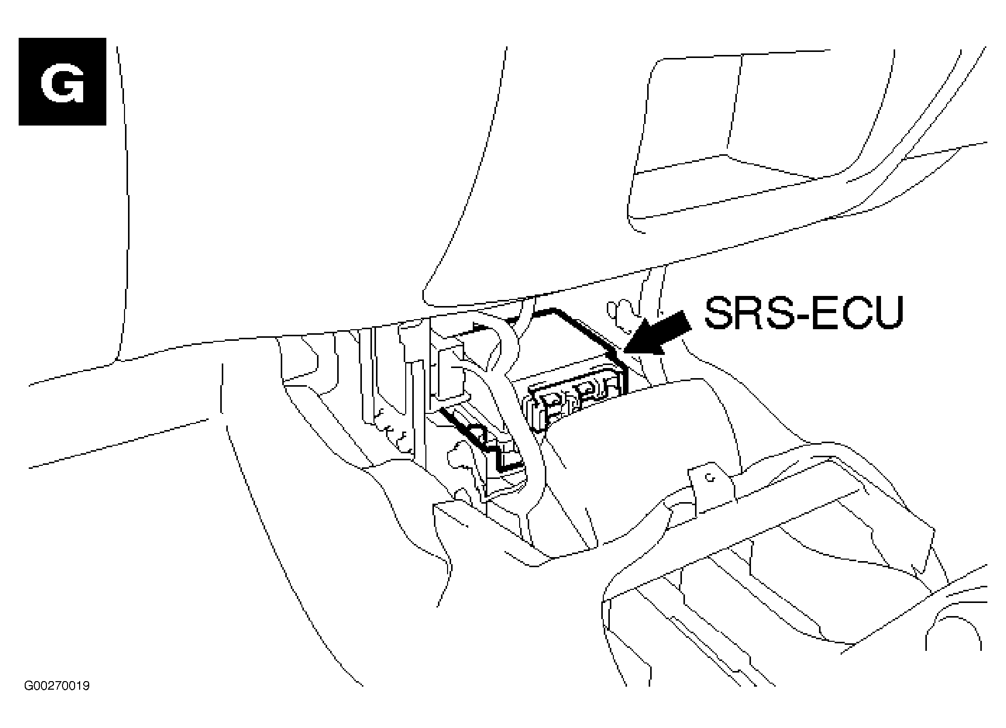 | SRS ECU | Behind lower center of dash. See Figure . |