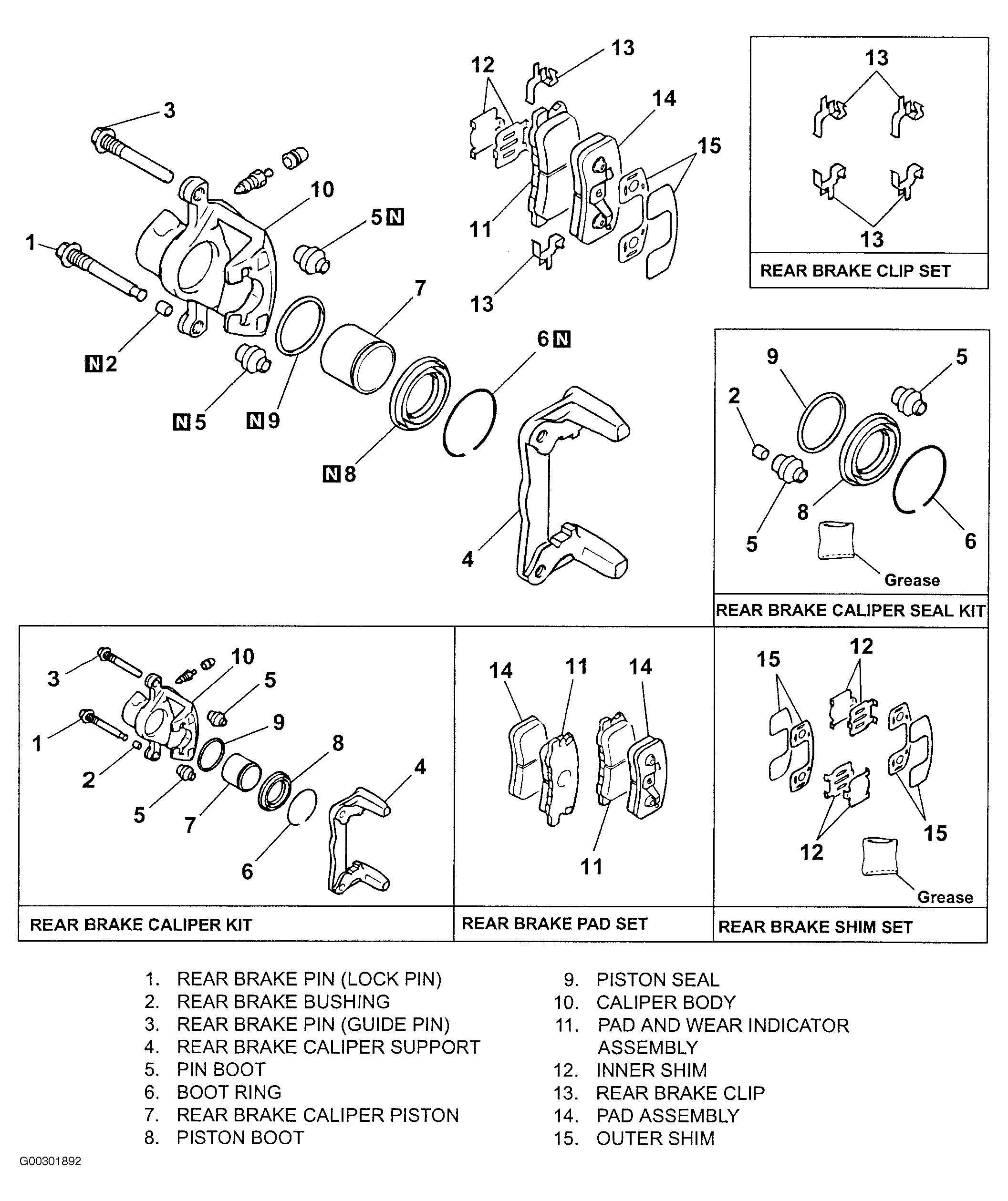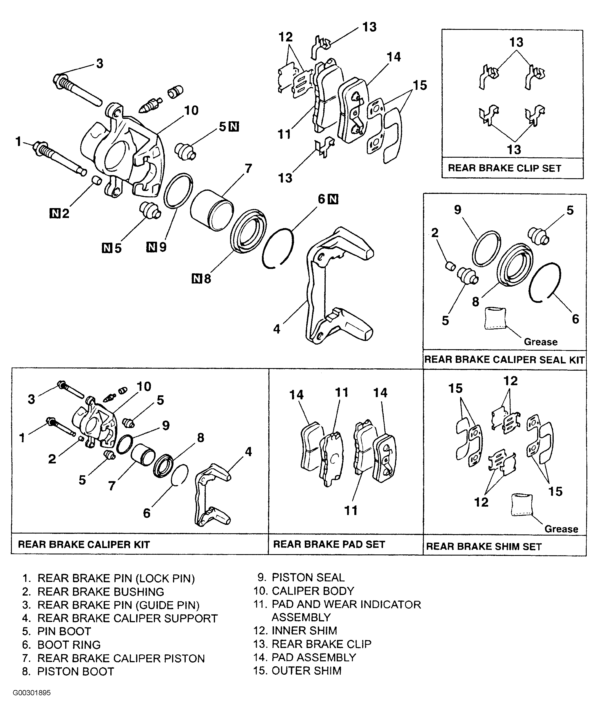 Fig 2: Exploded View Of Rear Caliper Assembly