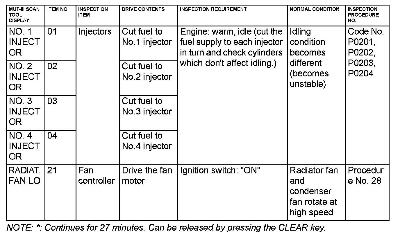 Actuator Test Reference Table Part 2: