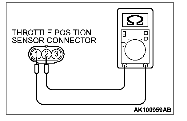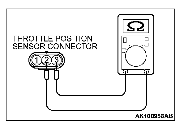 2. Measure resistance between the throttle position sensor side connector terminal No. 2 and terminal No. 3.