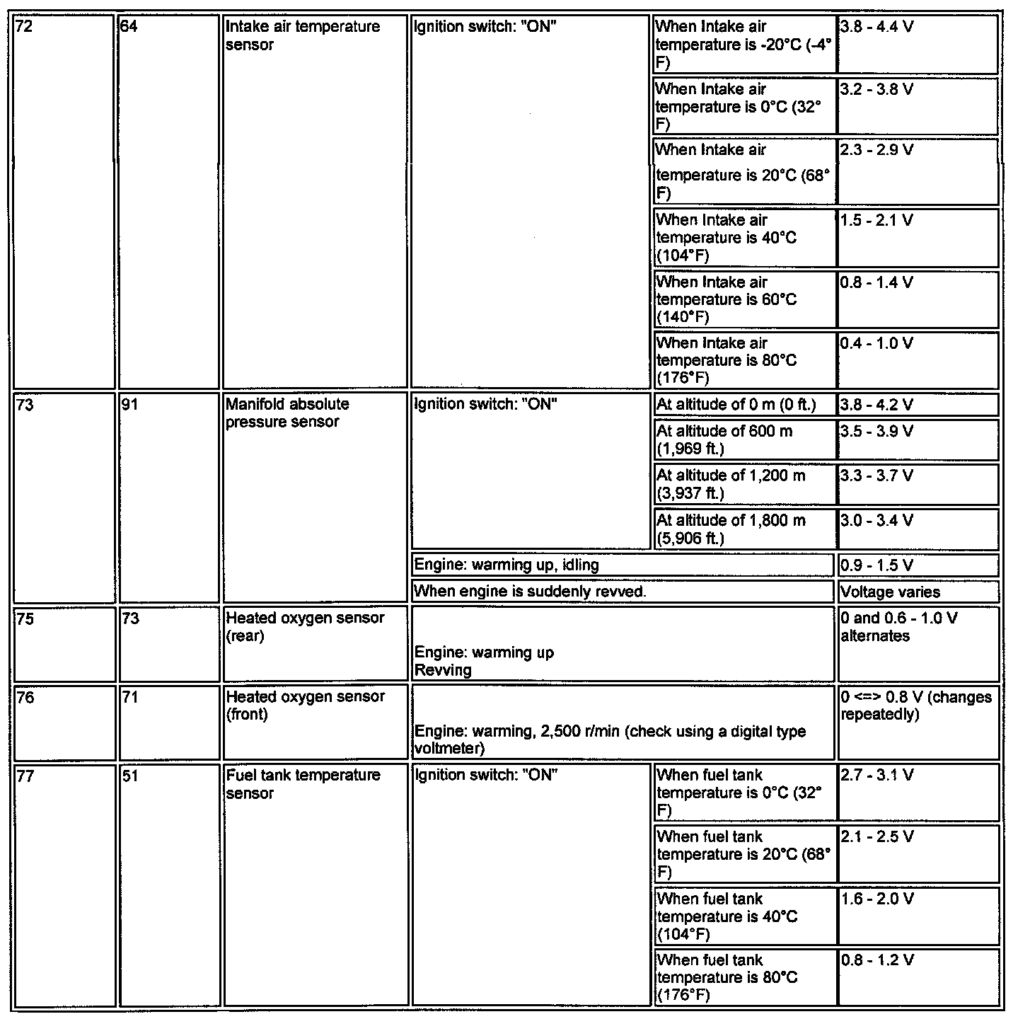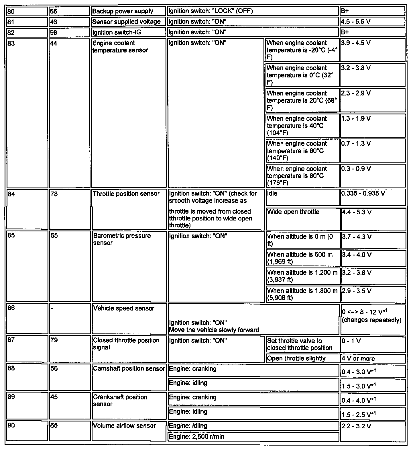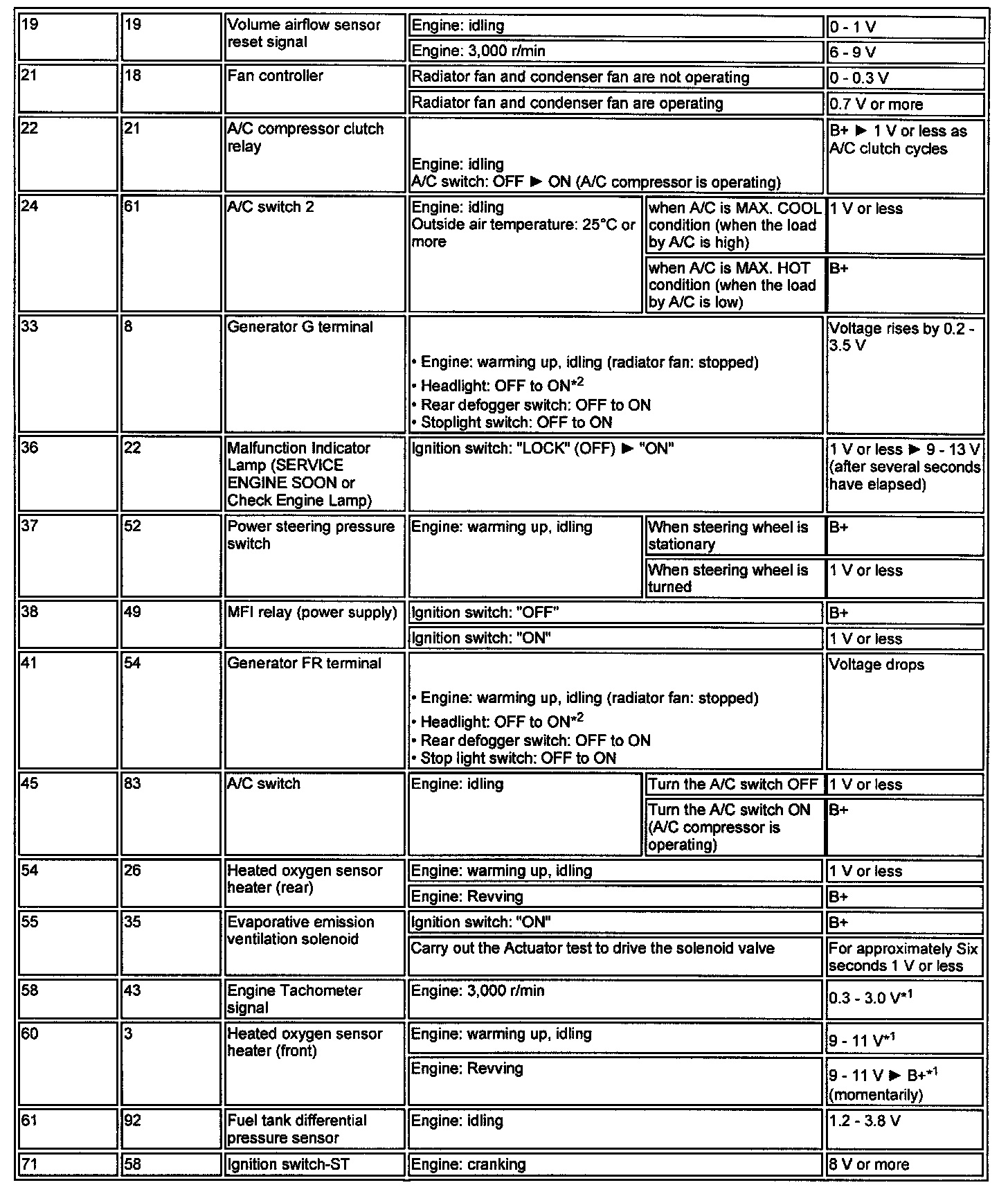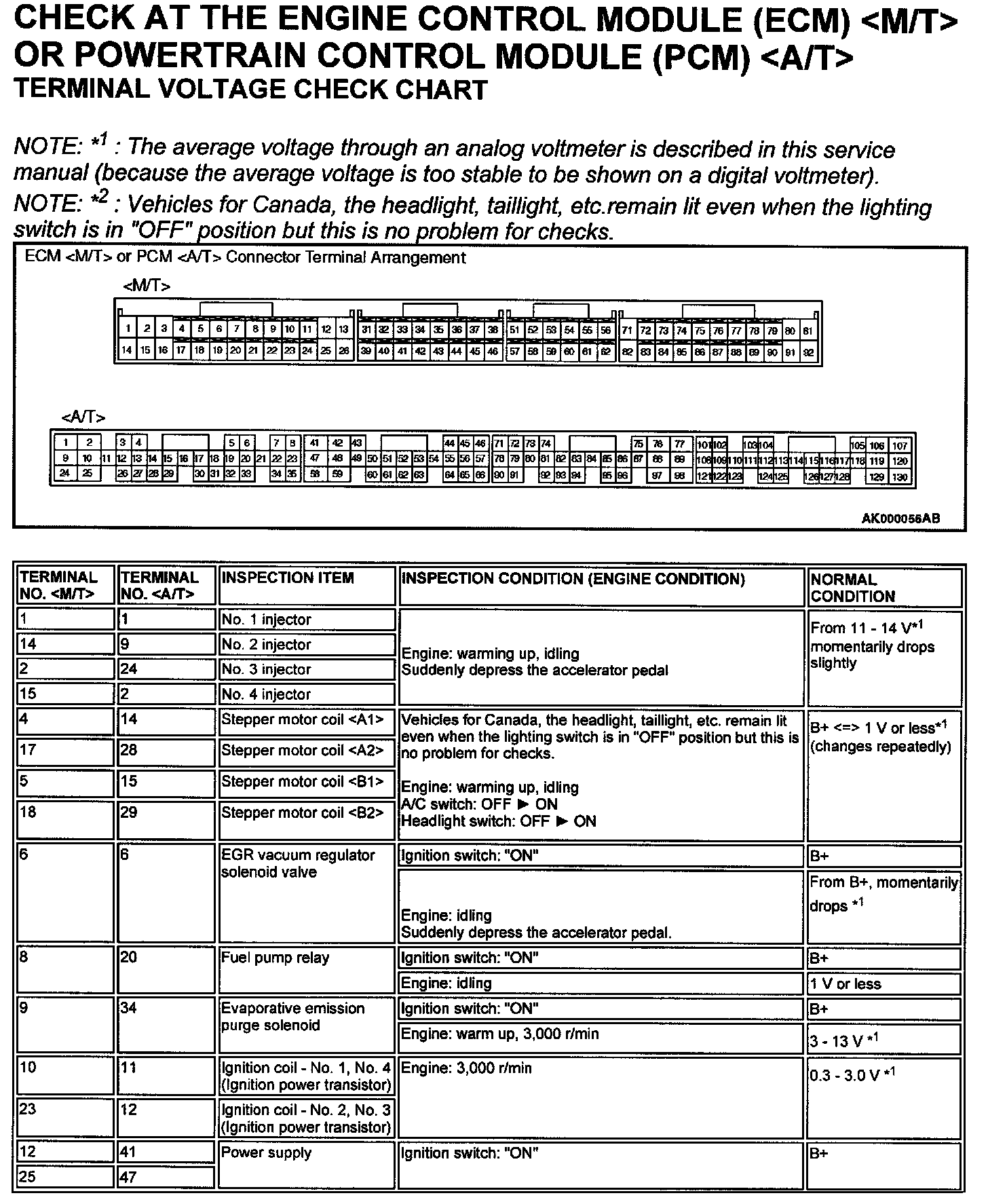 TERMINAL VOLTAGE CHECK CHART
