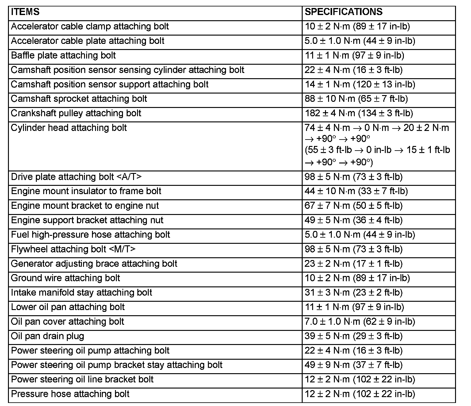 Fastener Tightening Specifications