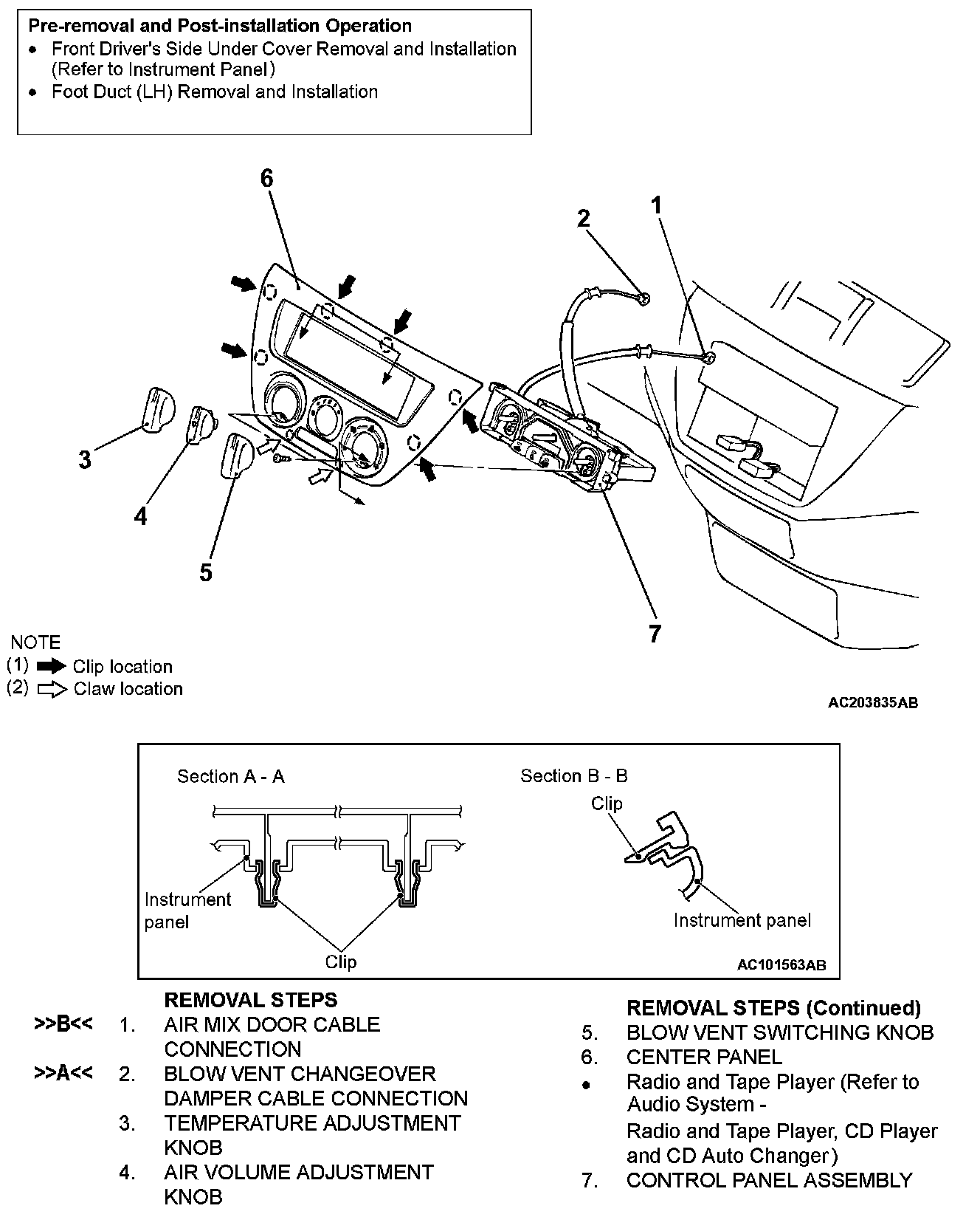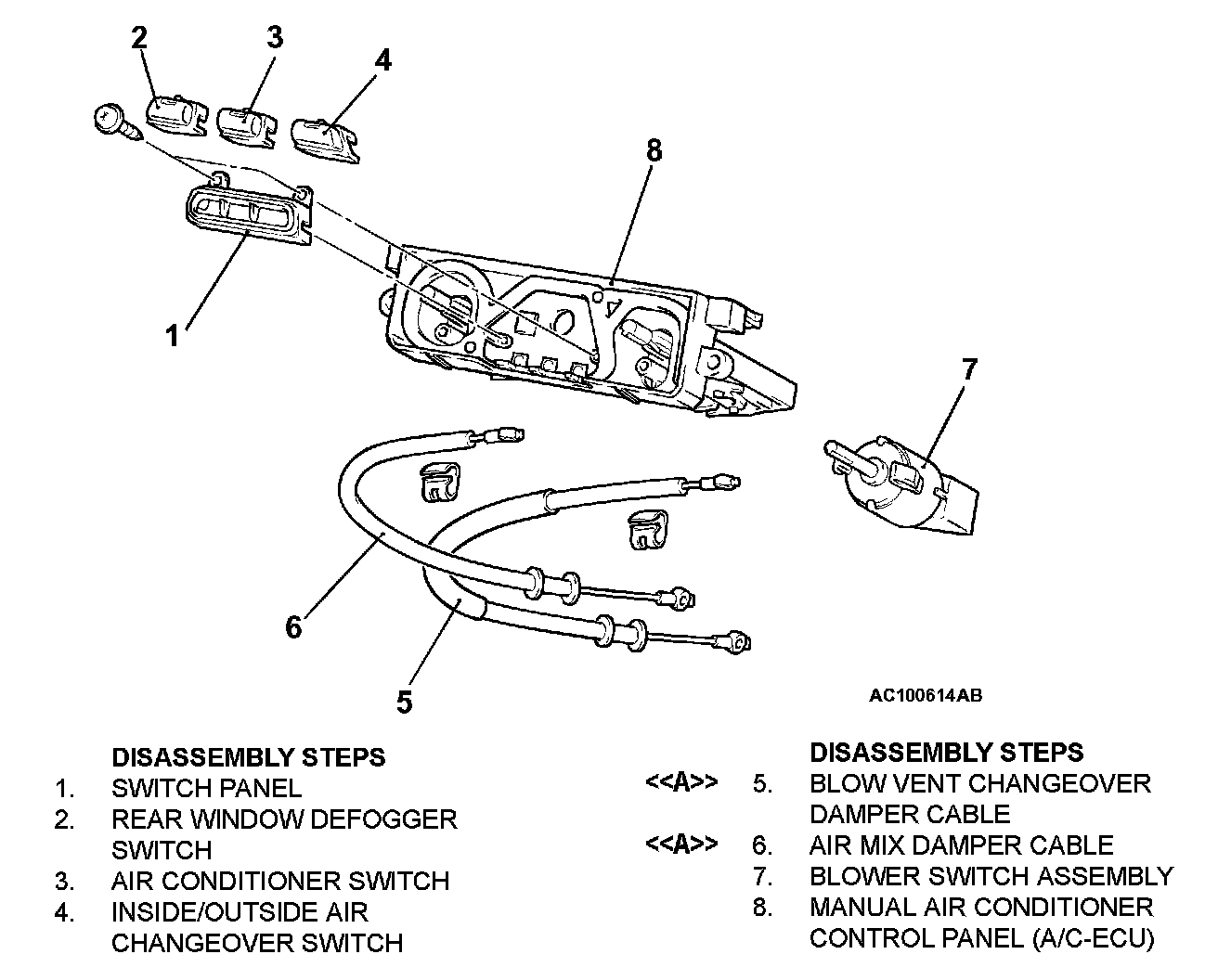 <> BLOW VENT CHANGEOVER DAMPER CABLE AND AIR MIX DAMPER CABLE REMOVAL