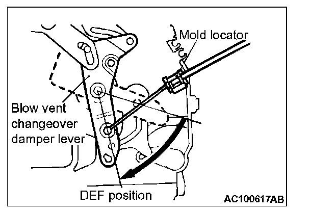 2. Set the heater unit's blow vent changeover damper lever to the DEF position (turn the damper relay to the left until it stops) and install the cable.