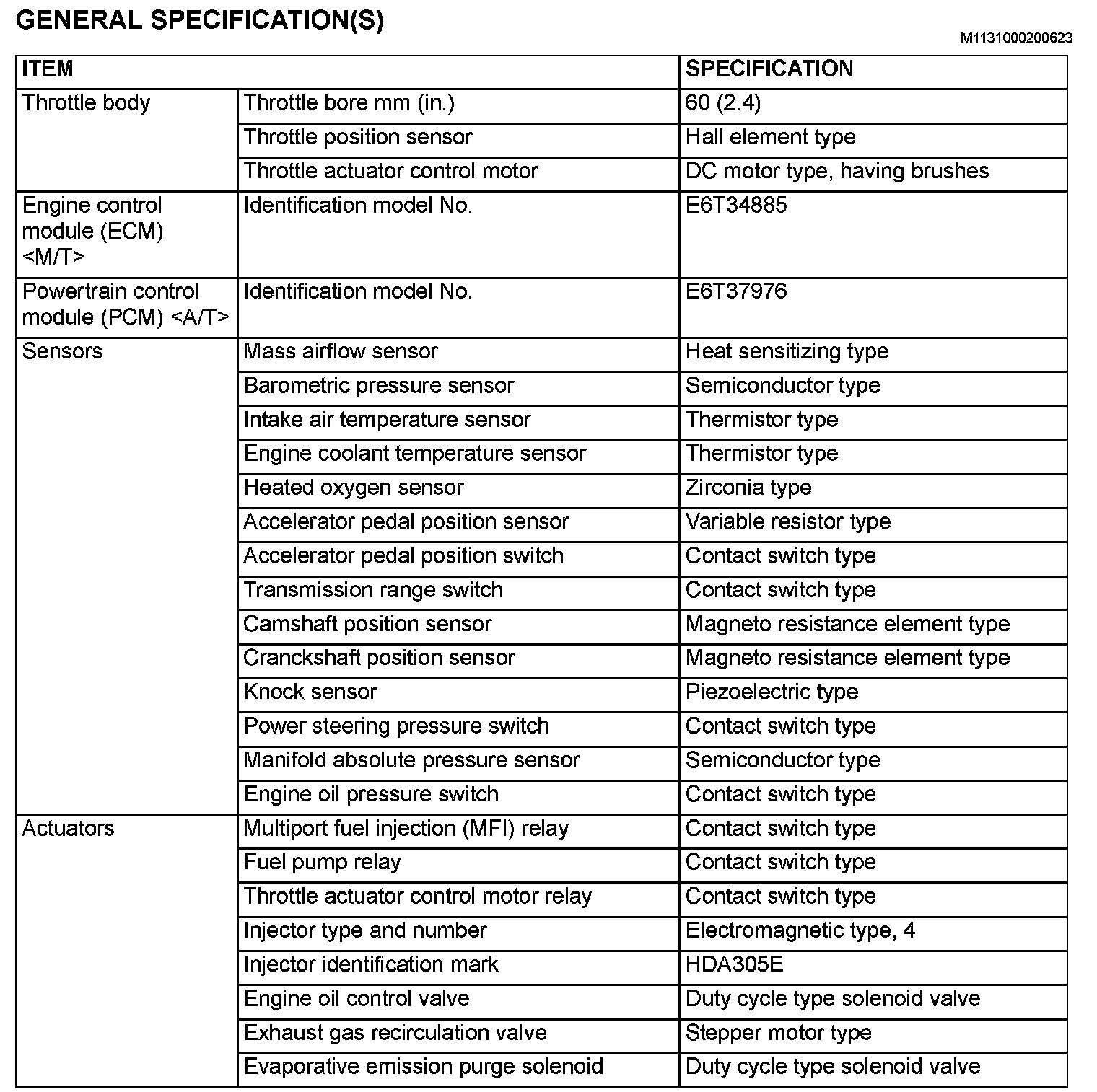 General Specification(s):