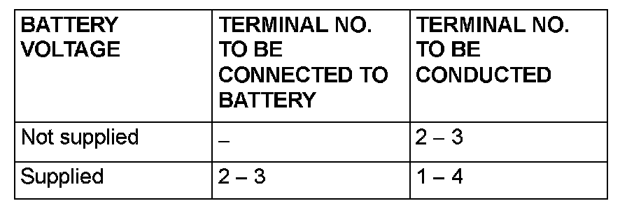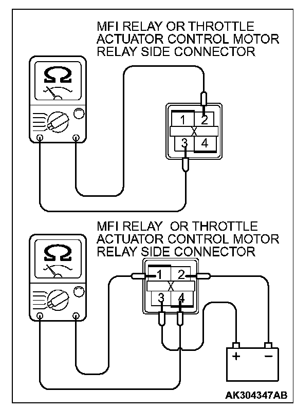 MULTIPORT FUEL INJECTION (MFI) RELAY AND THROTTLE ACTUATOR CONTROL MOTOR RELAY CONTINUITY CHECKInspect the MFI relay and throttle actuator control motor relay for continuity in accordance with the chart shown.