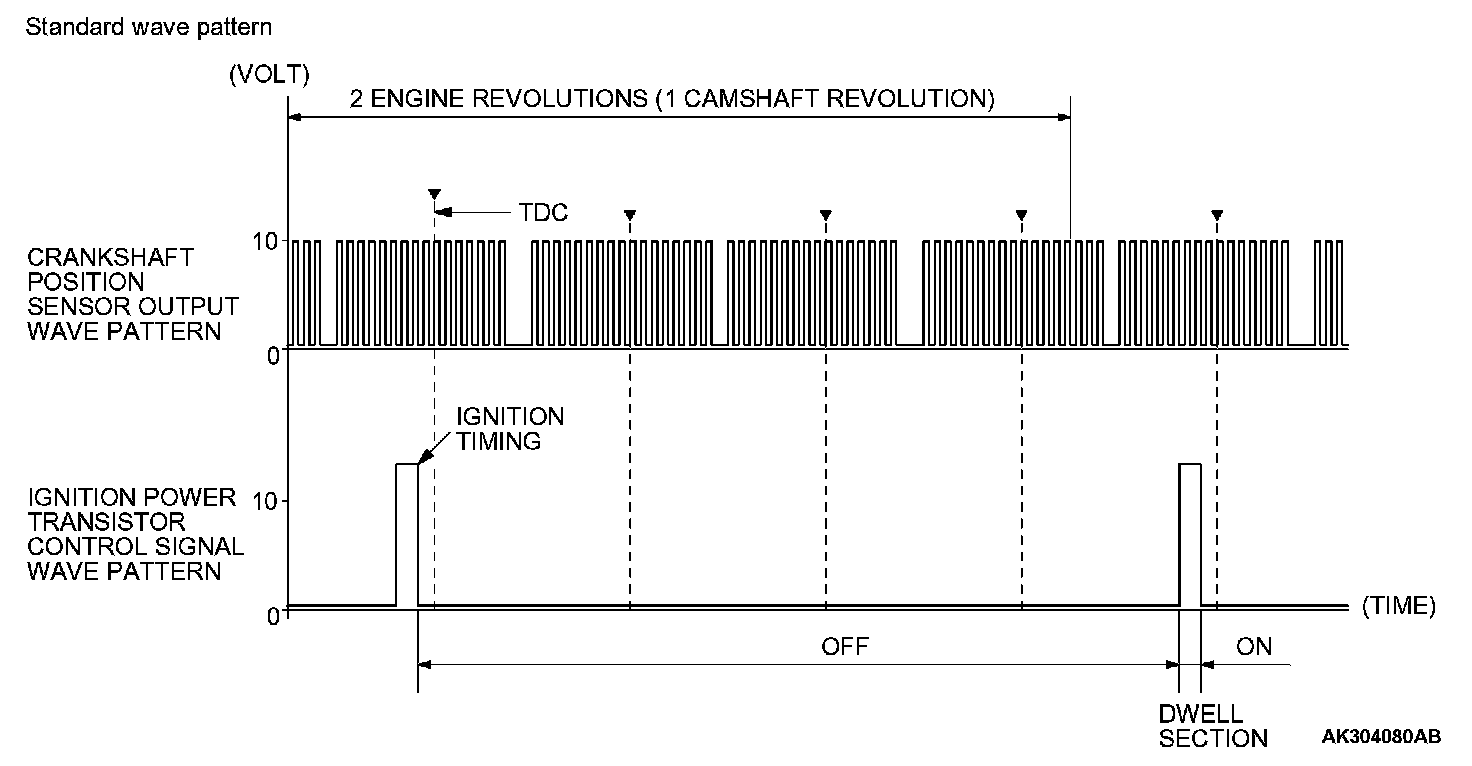 Point: The power transistor control signal (ignition timing) is advanced when the engine speed is increased.