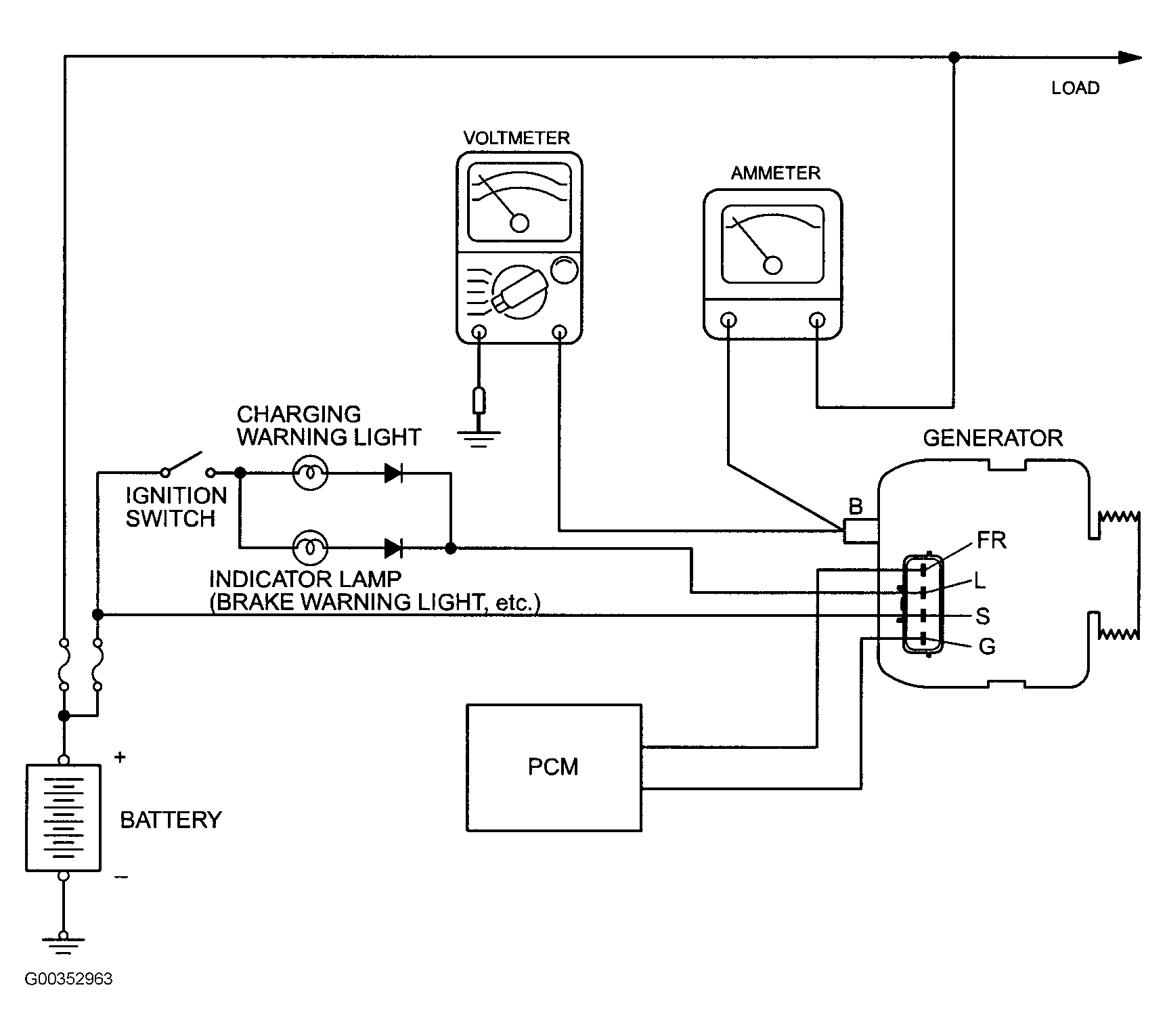 If the voltage is 0 V, the cause is probably an open circuit in the wire or fusible link between the generator B terminal and the battery positive terminal or malfunctioning voltmeter.