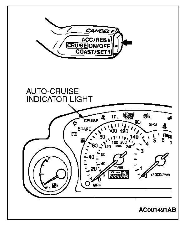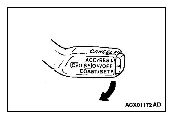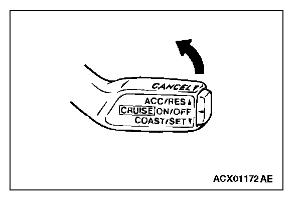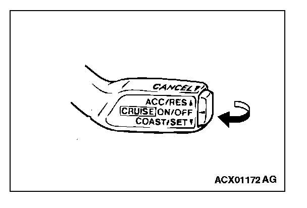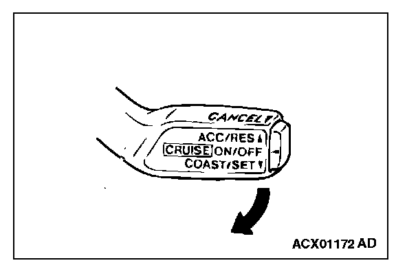 1. The auto-cruise control switch is pushed in the direction of arrow.