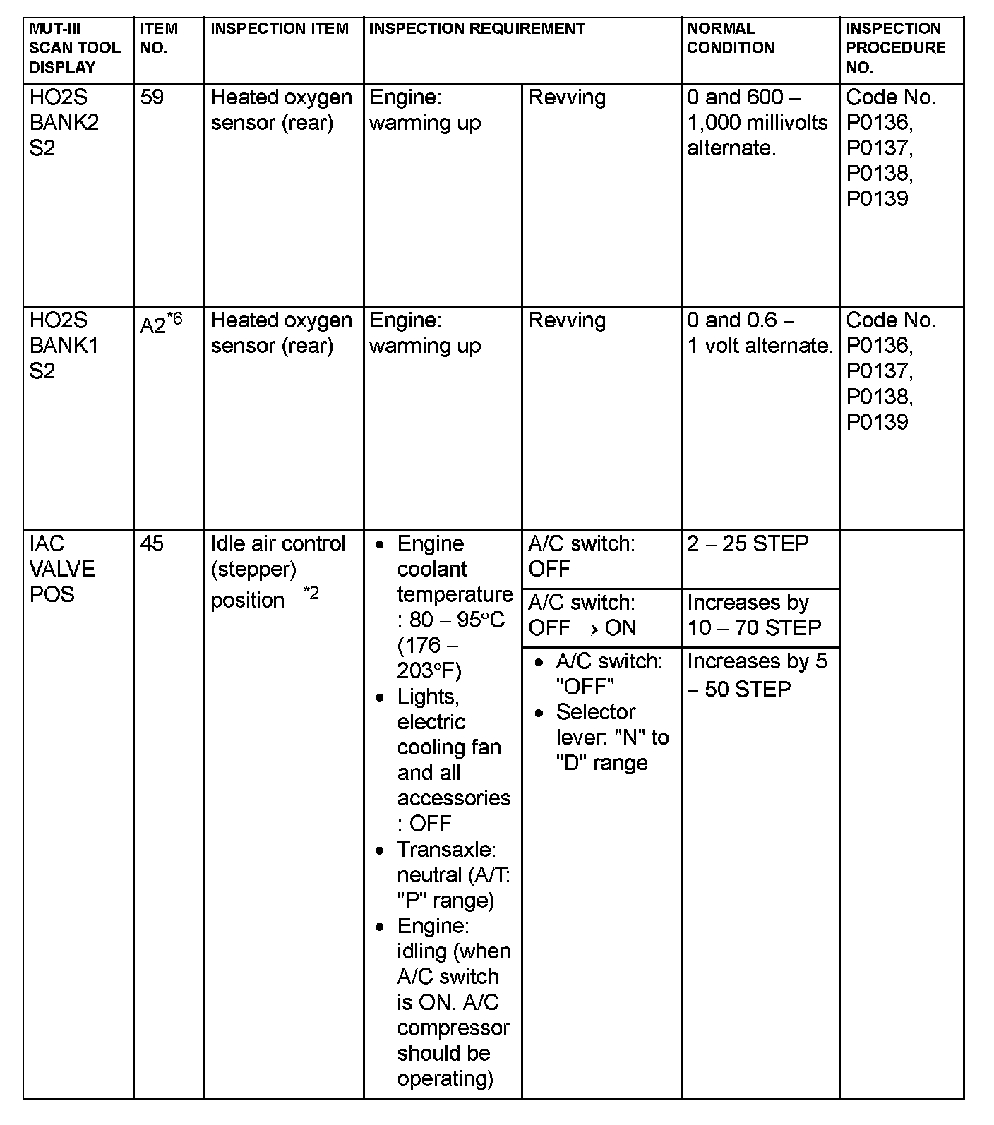 *1: If the idle speed is lower than the standard value on a very cold engine [approximately -20°C (-4°F)] even when the IAC motor is fully opened, the air volume limiter built in the throttle body could be defective.