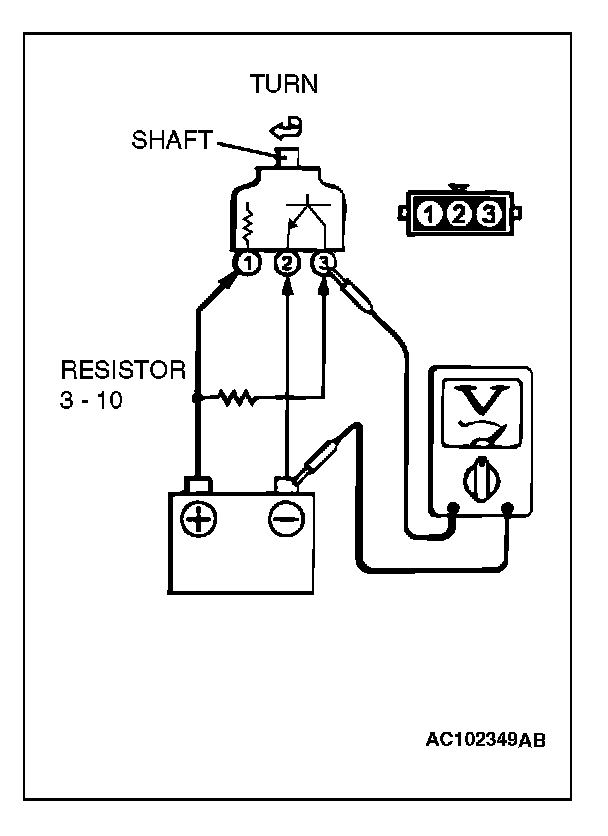 2. Turn the shaft of the vehicle speed sensor and check that there is voltage between terminals 2 - 3. (1 turn = 4 pulses)