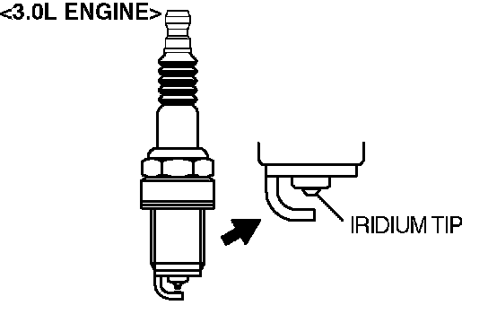 SPARK PLUGS (REPLACE)CAUTION: Iridium plugs are used on 3.0L engine. Use care not to damage the iridium tips of the iridium plugs. Do not attempt to adjust the gap on these plugs.