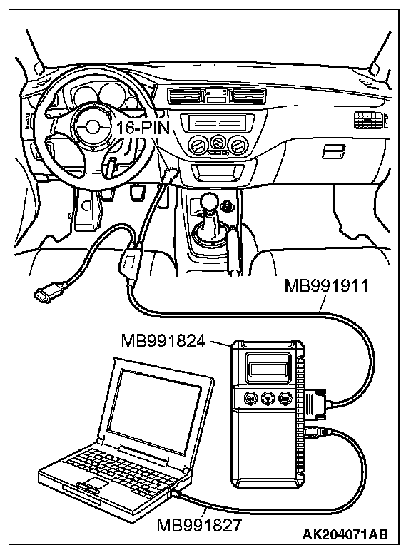1. Connect scan tool MB991958 to the data link connector.