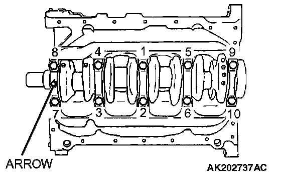 Before installing the bearing cap bolts, check that the shank length of each bolt meets the limit. If it exceeds the limit, replace the bolt.