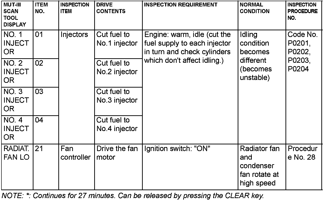Actuator Test Reference Table Part 2: