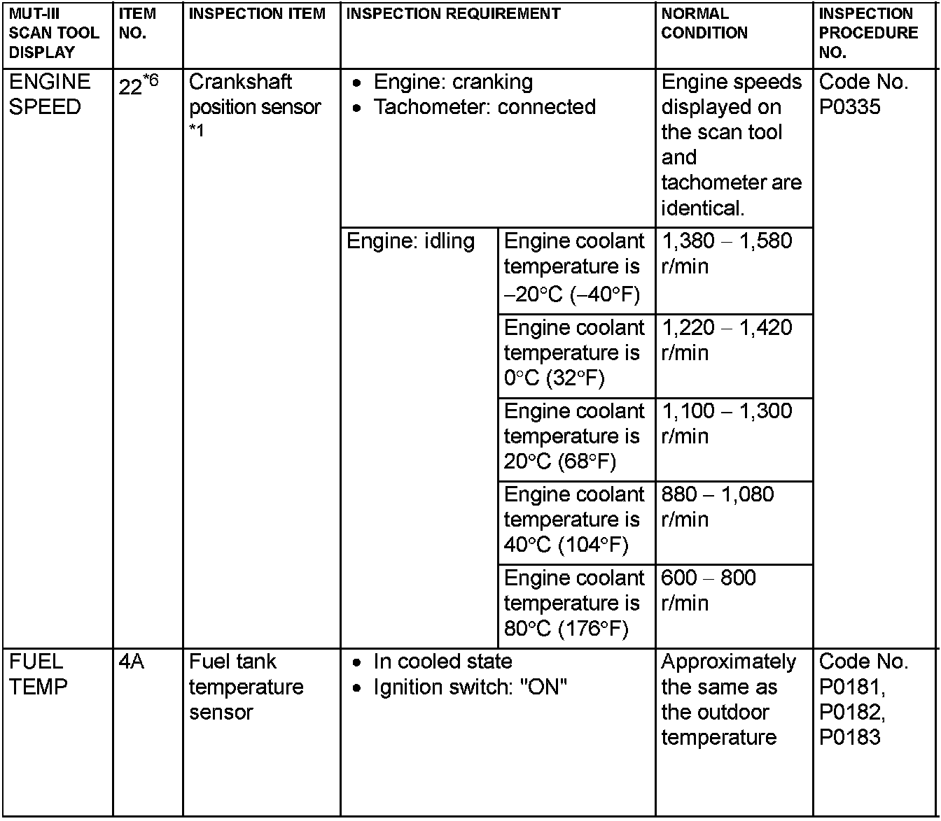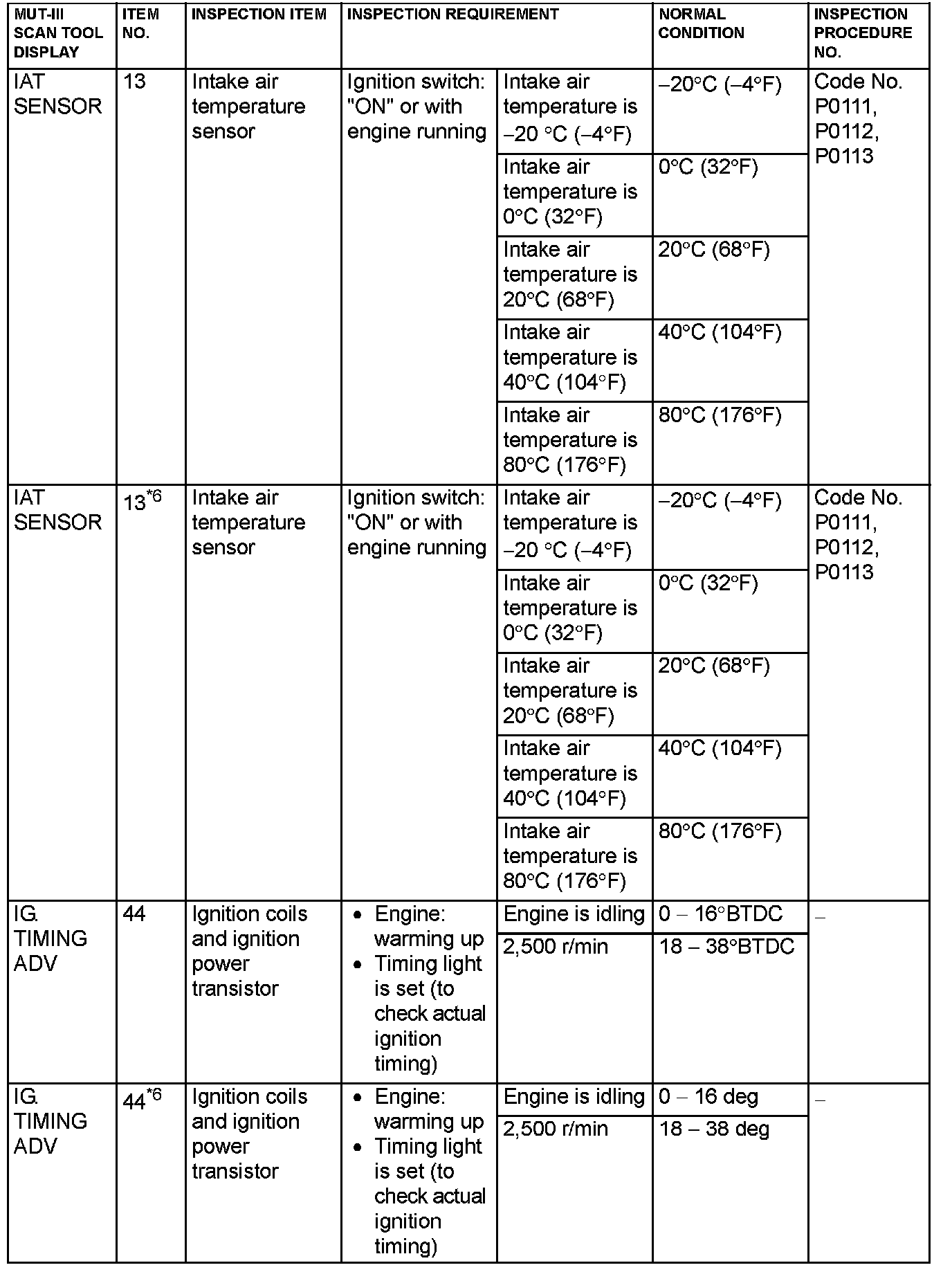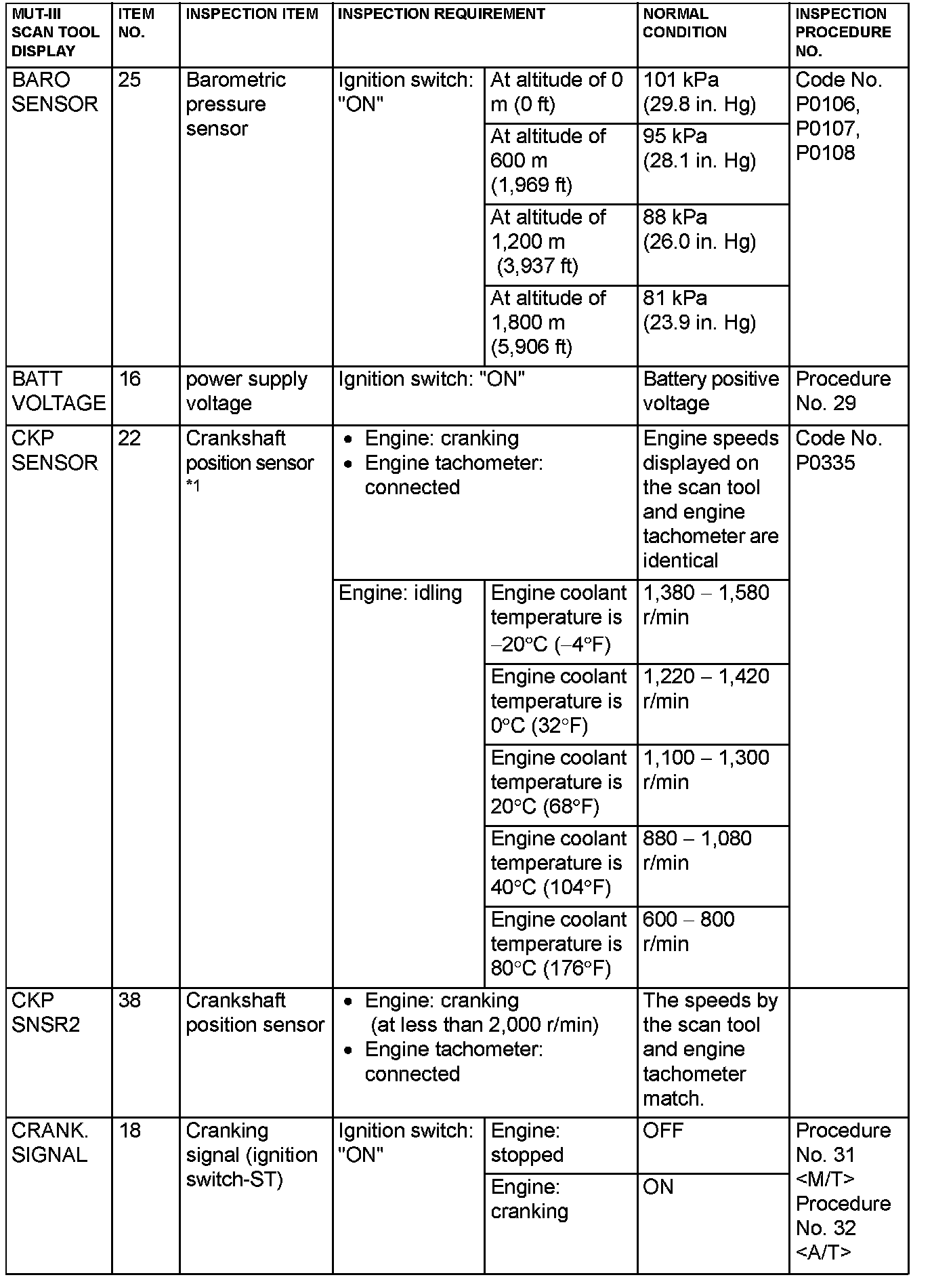 Home >> Mitsubishi >> 2005 >> Lancer L4-2.0L SOHC >> Repair and Diagnosis >> Powertrain Management >> Computers and Control Systems >> Testing and Inspection >> Scan Tool Testing and Procedures >> Data List Reference Table & Normal Scan Data Values