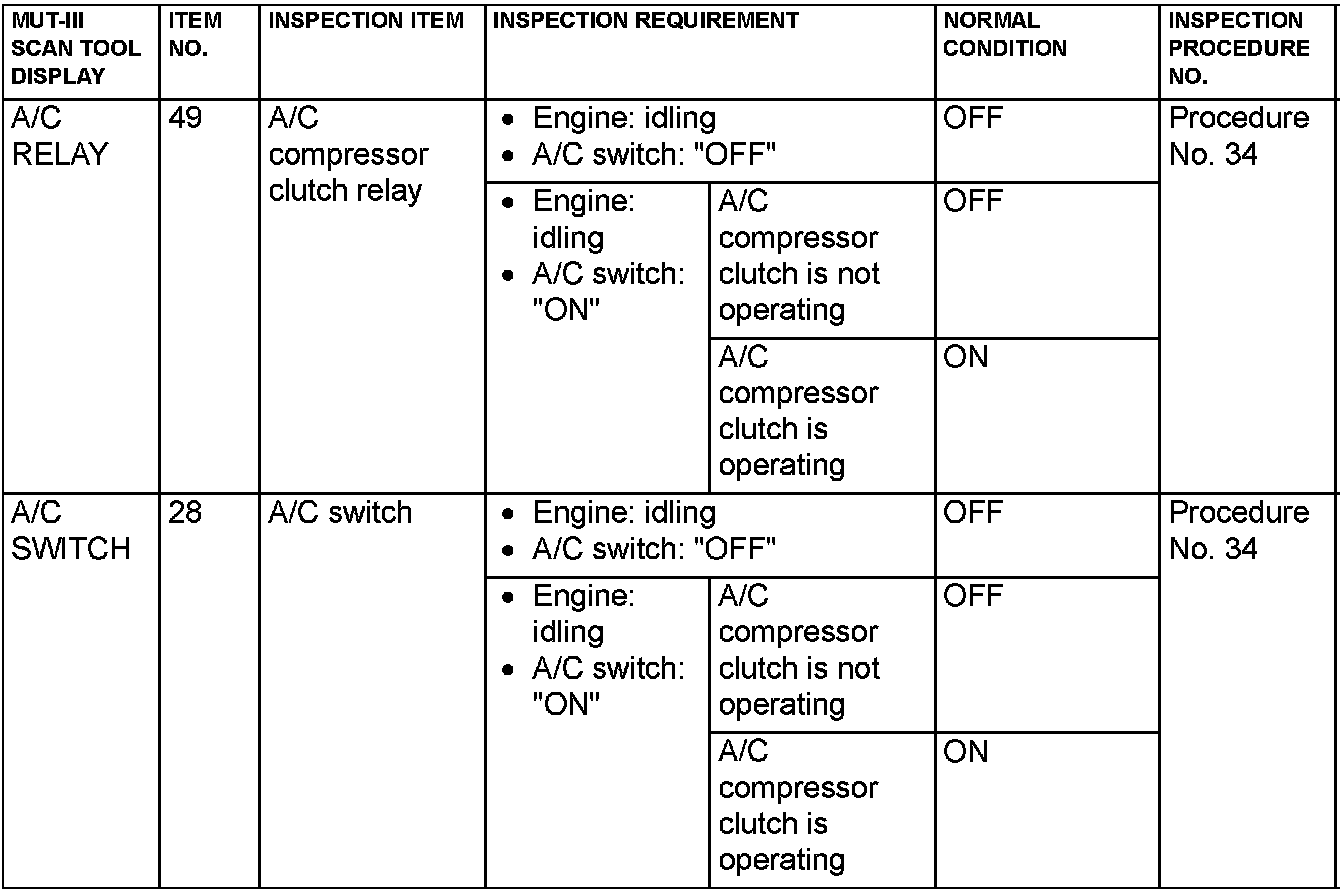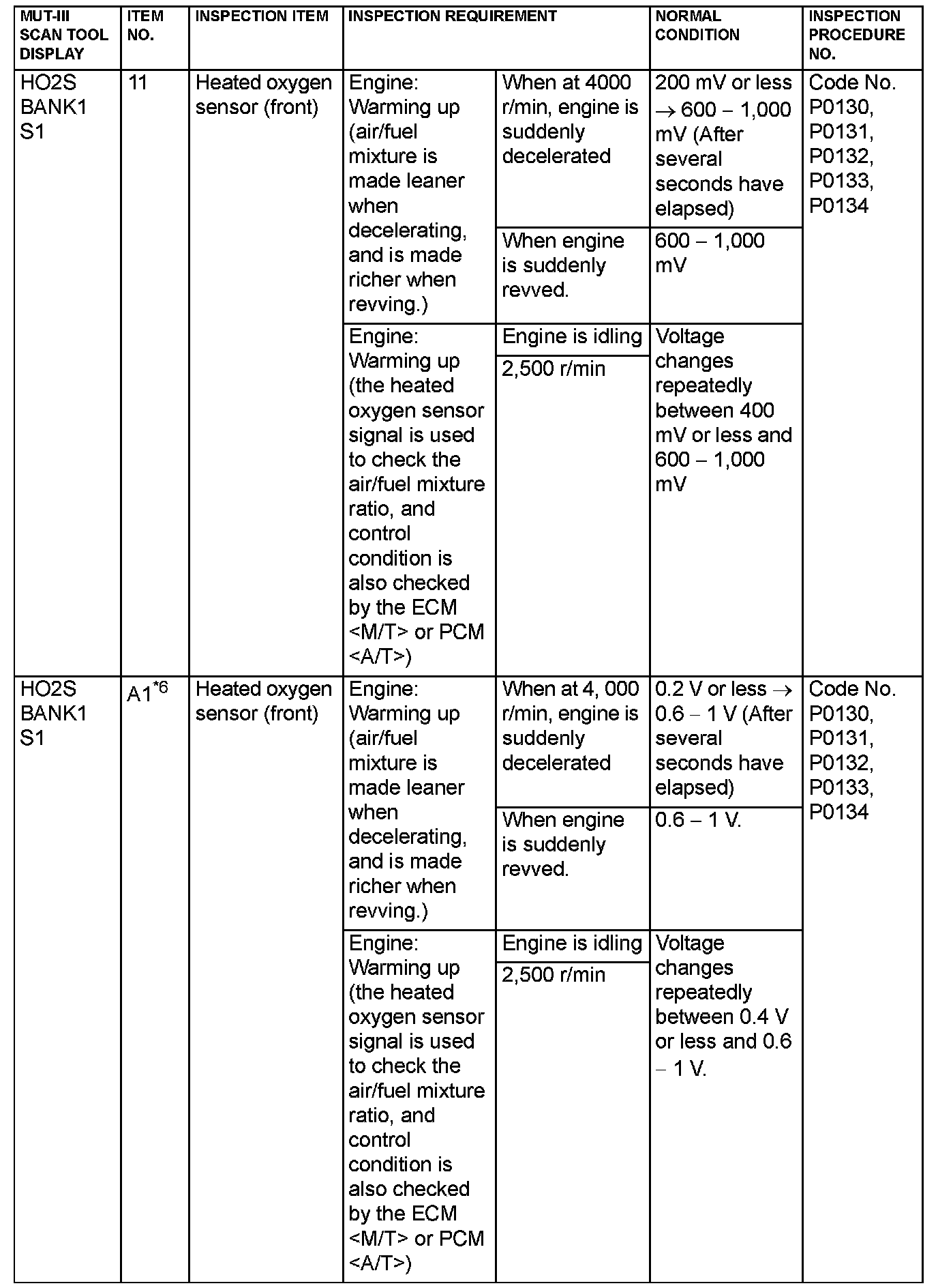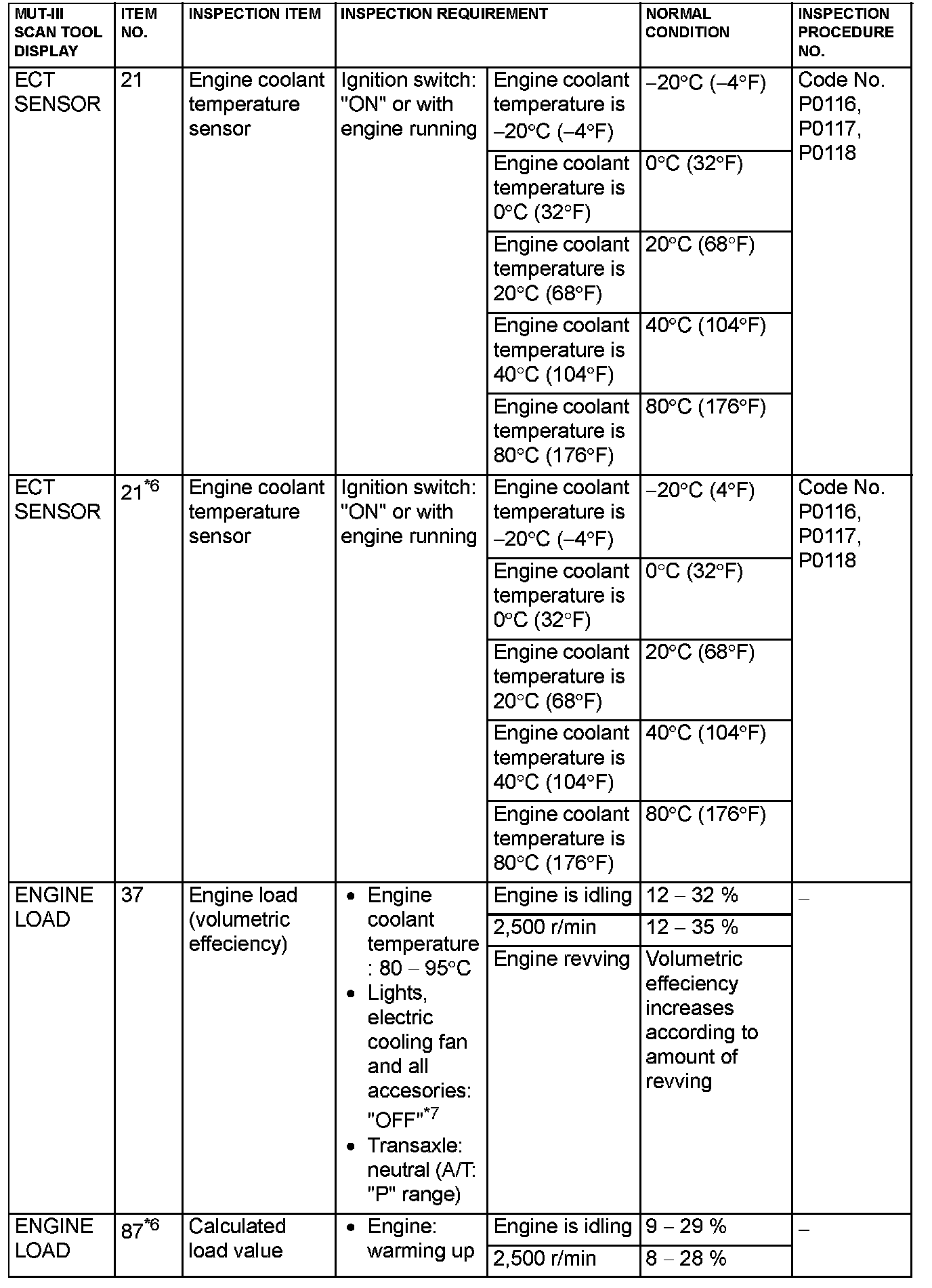 Home >> Mitsubishi >> 2005 >> Lancer L4-2.0L SOHC >> Repair and Diagnosis >> Powertrain Management >> Computers and Control Systems >> Testing and Inspection >> Scan Tool Testing and Procedures >> Data List Reference Table & Normal Scan Data Values