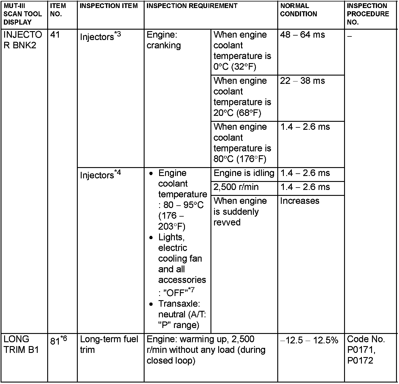 NOTE: *4: In a new vehicle [driven approximately 500 km (311 mile) or less], the injector drive time is sometimes 10% longer than the standard time.