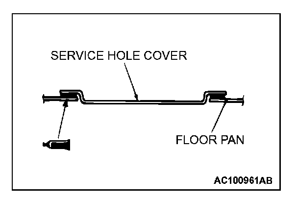 7. Apply the specified sealant to the contact surfaces of the service hole cover and the floor pan, and install the service hole cover.
