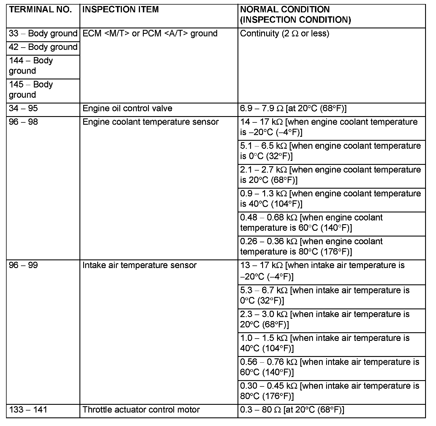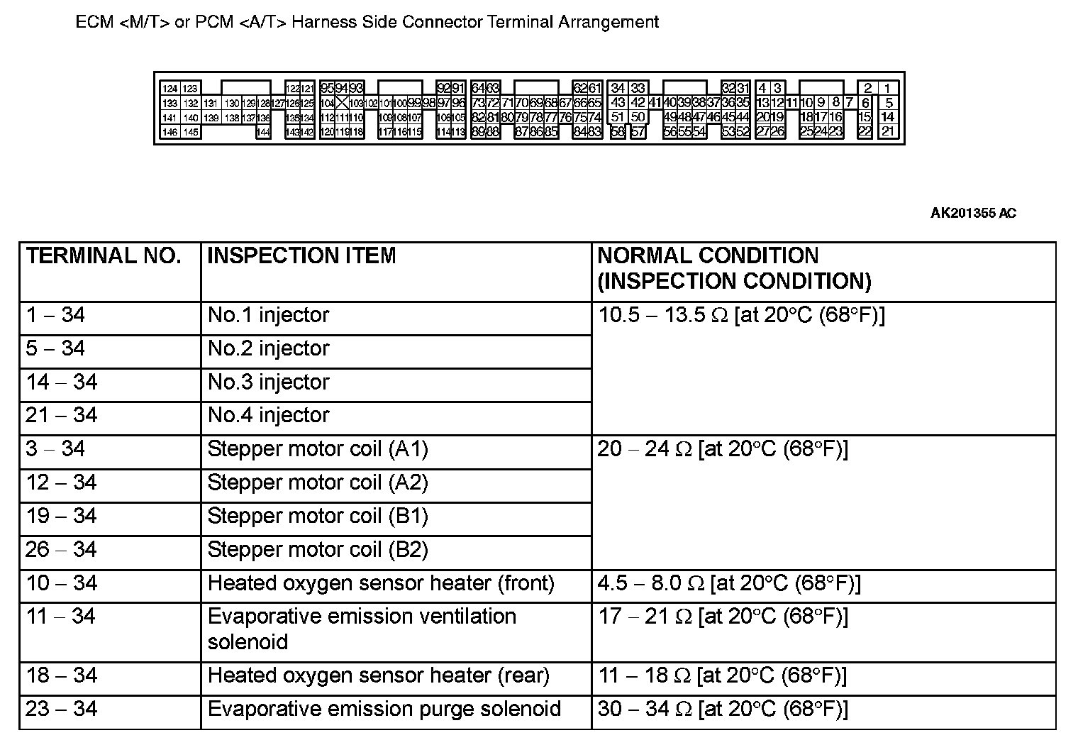 ECM <M/T> Or PCM <A/T> Harness Side Connector Terminal Arrangement Part 2: