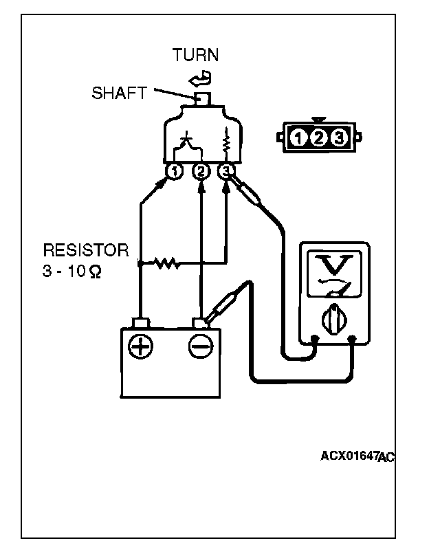 2. Turn the shaft of the vehicle speed sensor and check that there is voltage between terminals 2 - 3. (1 turn = 4 pulses)