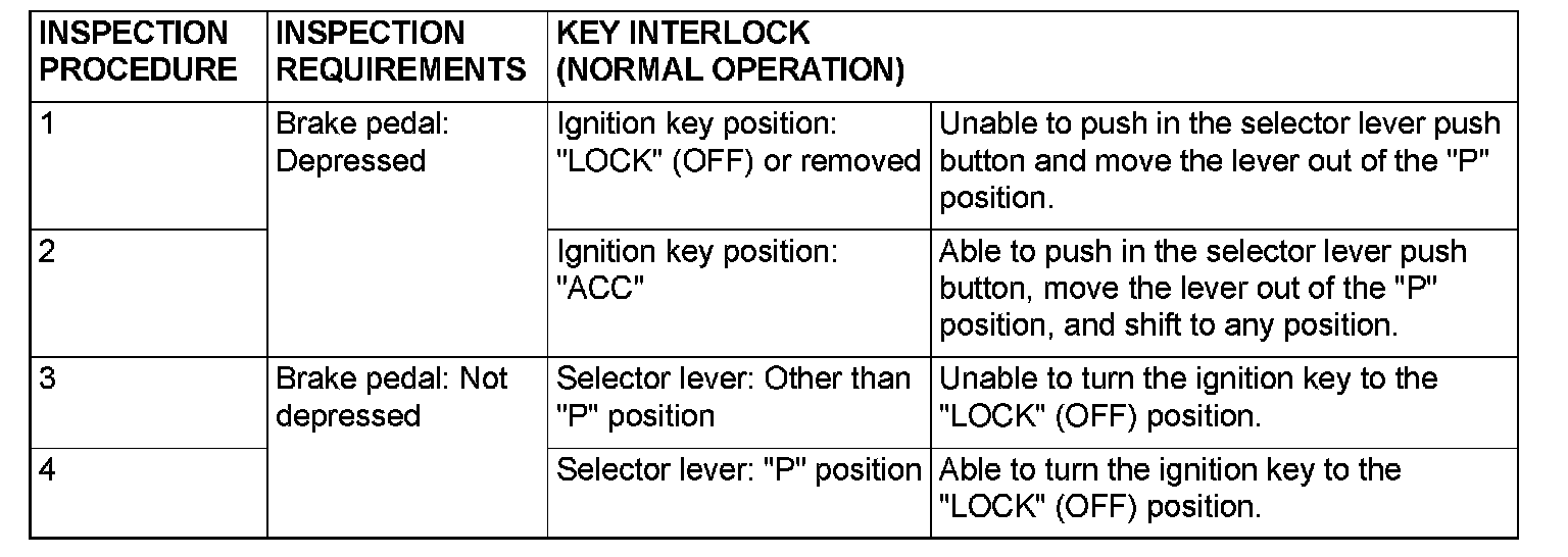 KEY INTERLOCK MECHANISM CHECK