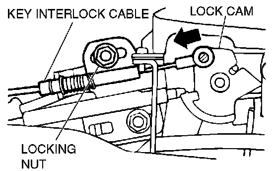 4) Loosen the locking nut of the key interlock cable.