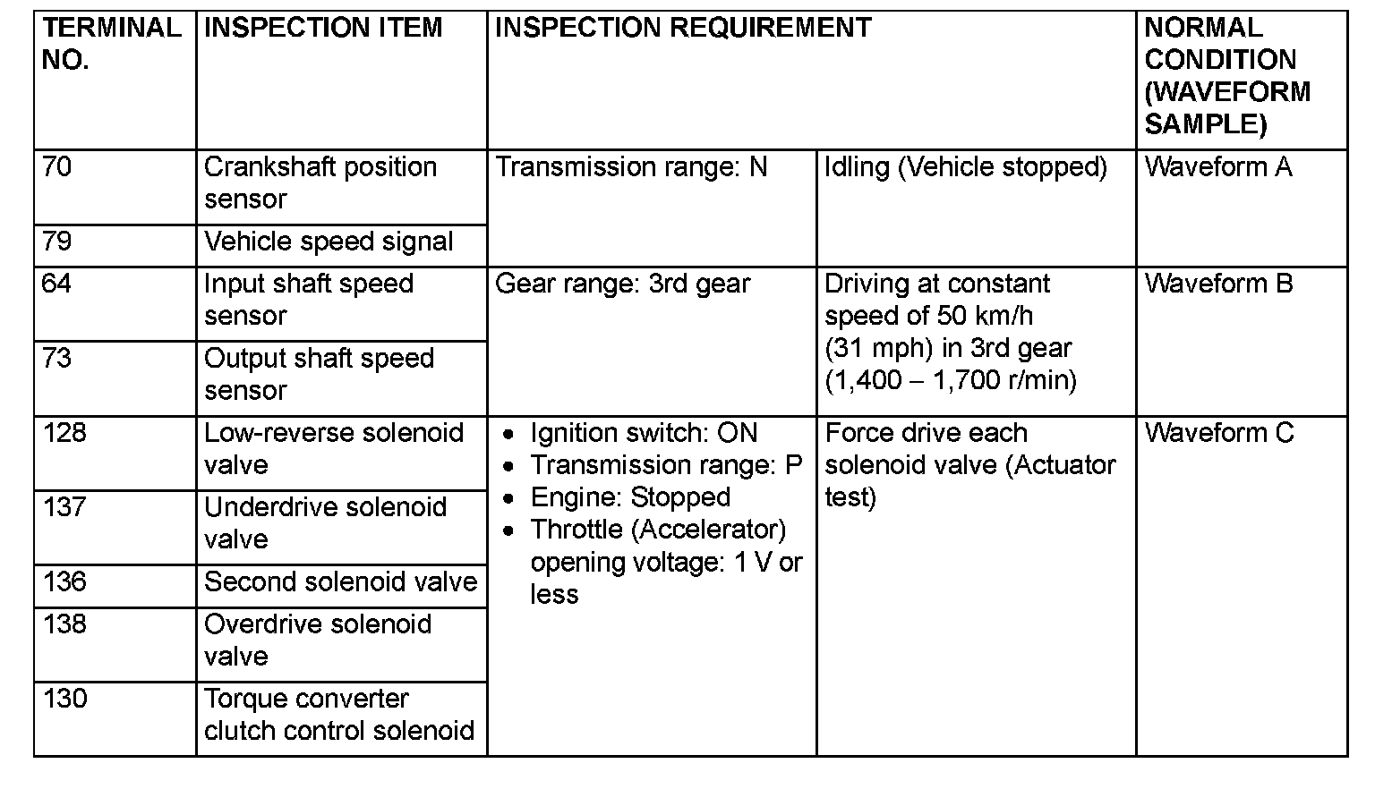 INSPECTION PROCEDURE USING AN OSCILLOSCOPE